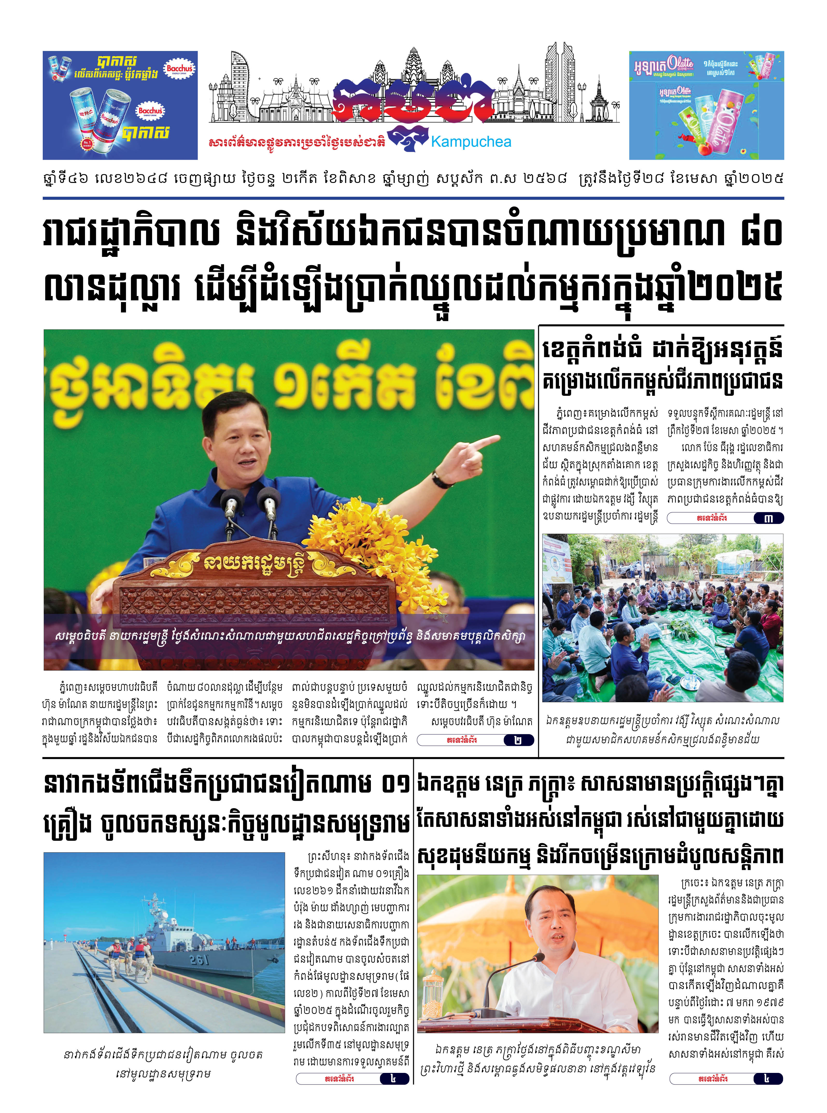កាសែតកម្ពុជាលេខ២៦៤៨ ចេញផ្សាយថ្ងៃចន្ទ ទី២៨ ខែមេសា ឆ្នាំ២០២៥