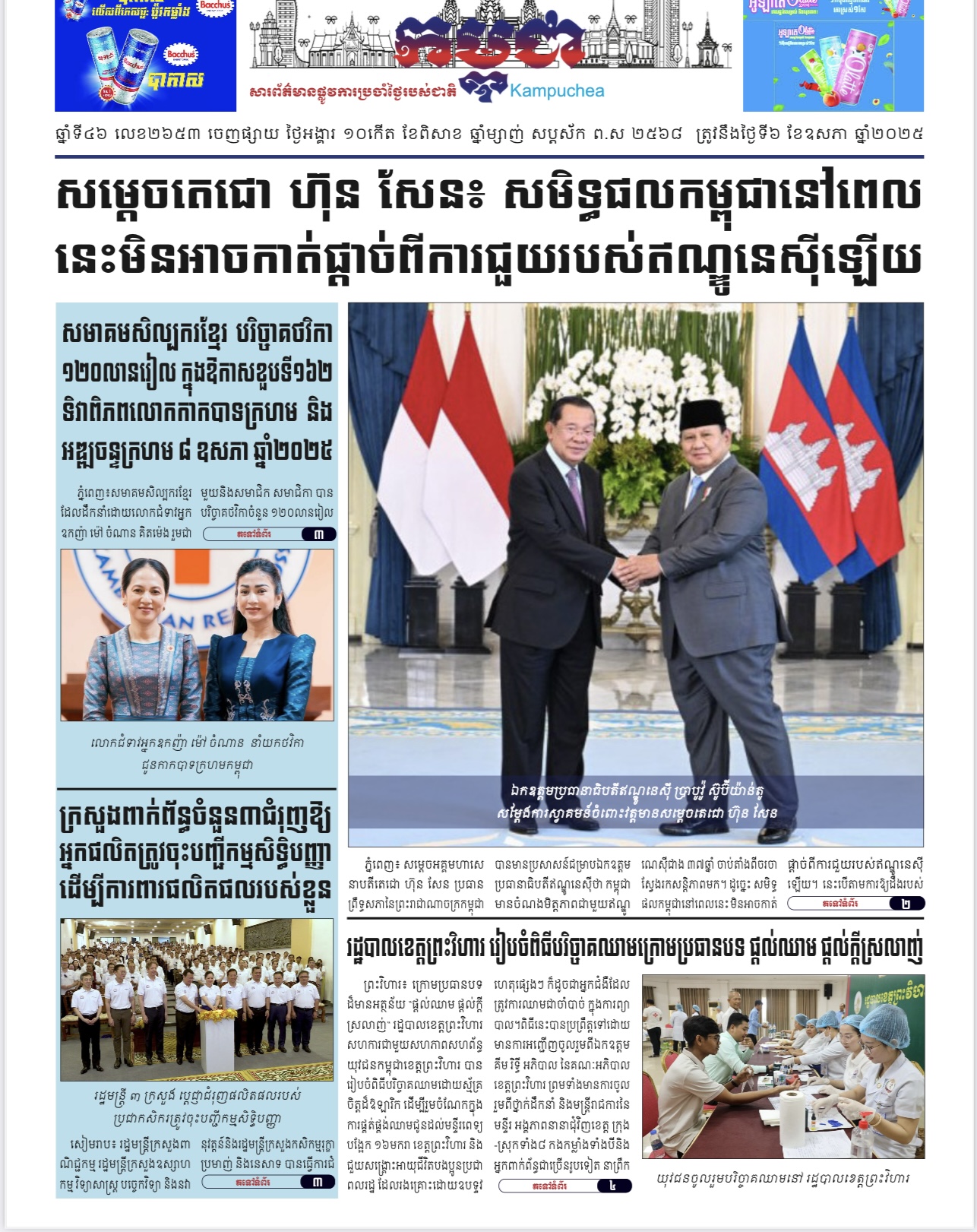 កាសែតកម្ពុជាលេខ២៦៥១ ចេញផ្សាយថ្ងៃសុក្រ ទី០២ ខែឧសភា ឆ្នាំ២០២៥
