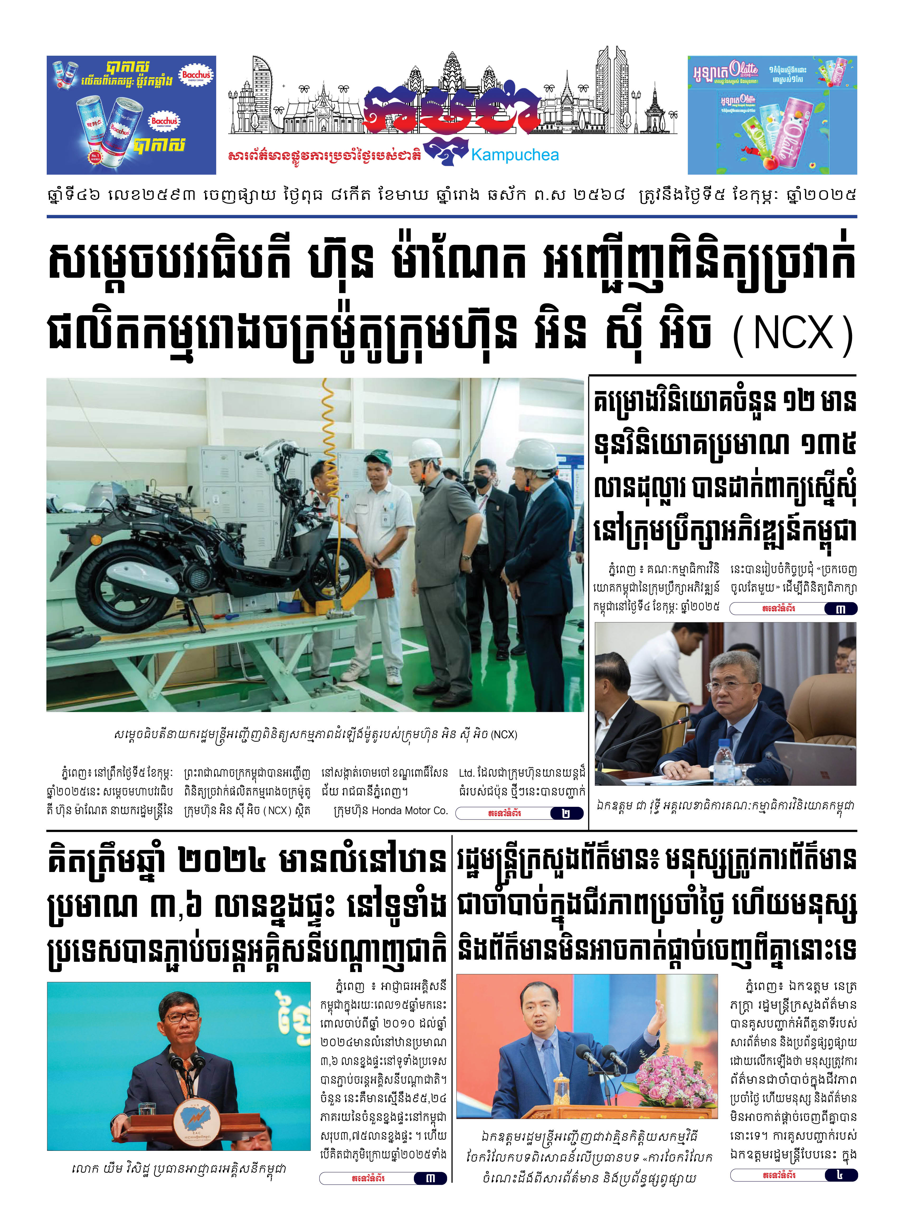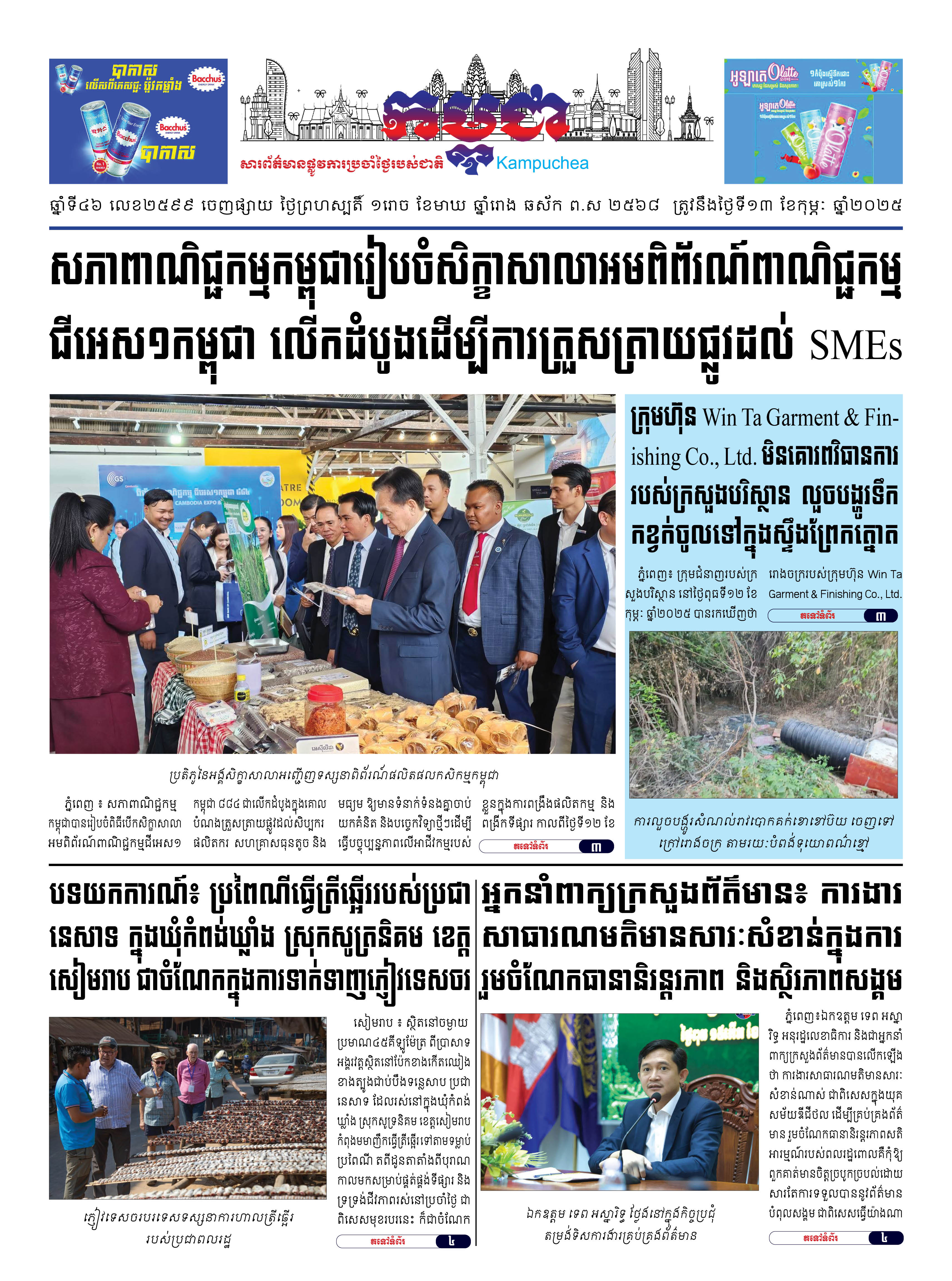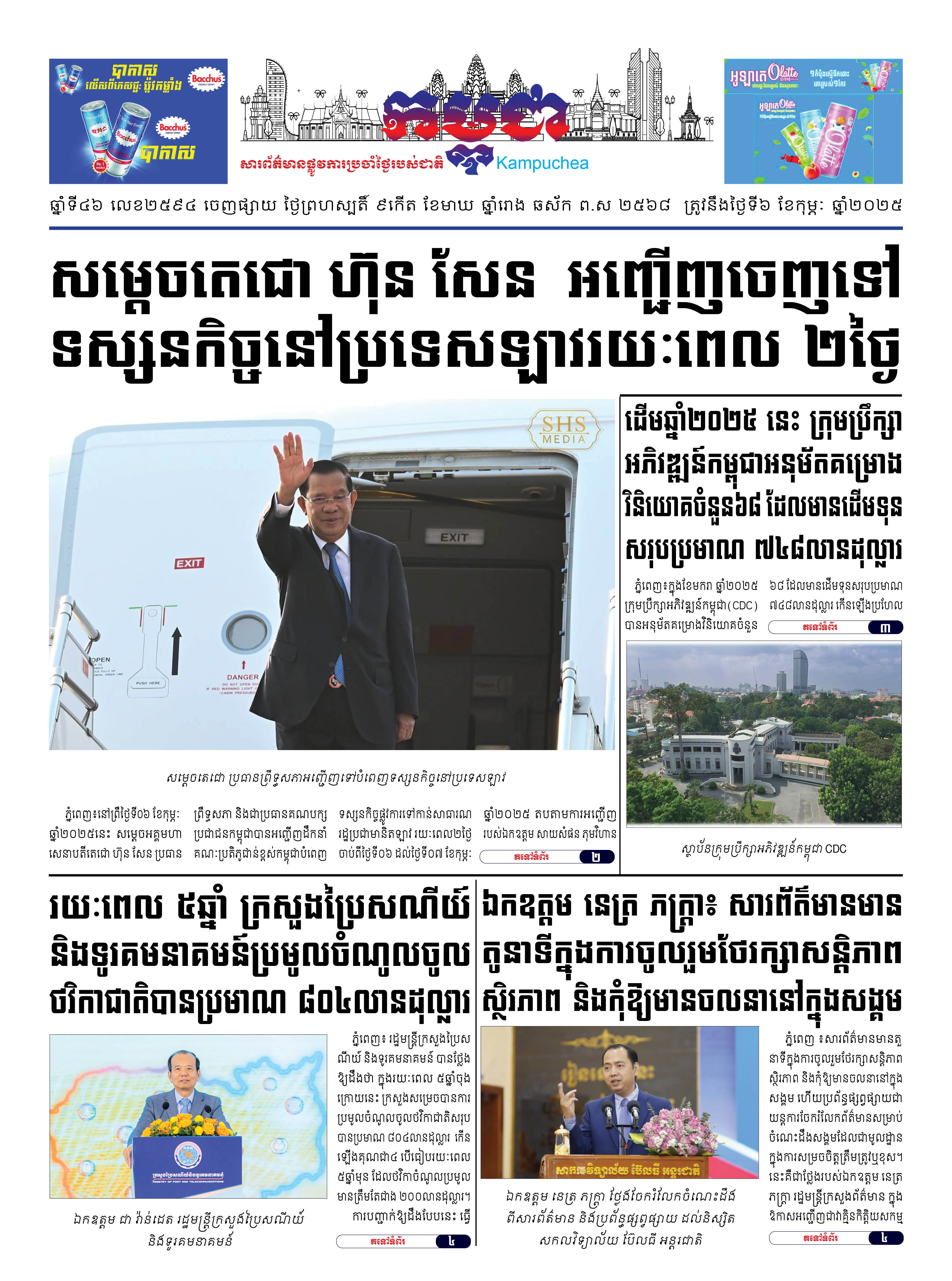កាសែតកម្ពុជាលេខ២៥៩៣ ចេញផ្សាយថ្ងៃពុធ ទី០៥ ខែកុម្ភៈ ឆ្នាំ២០២៥