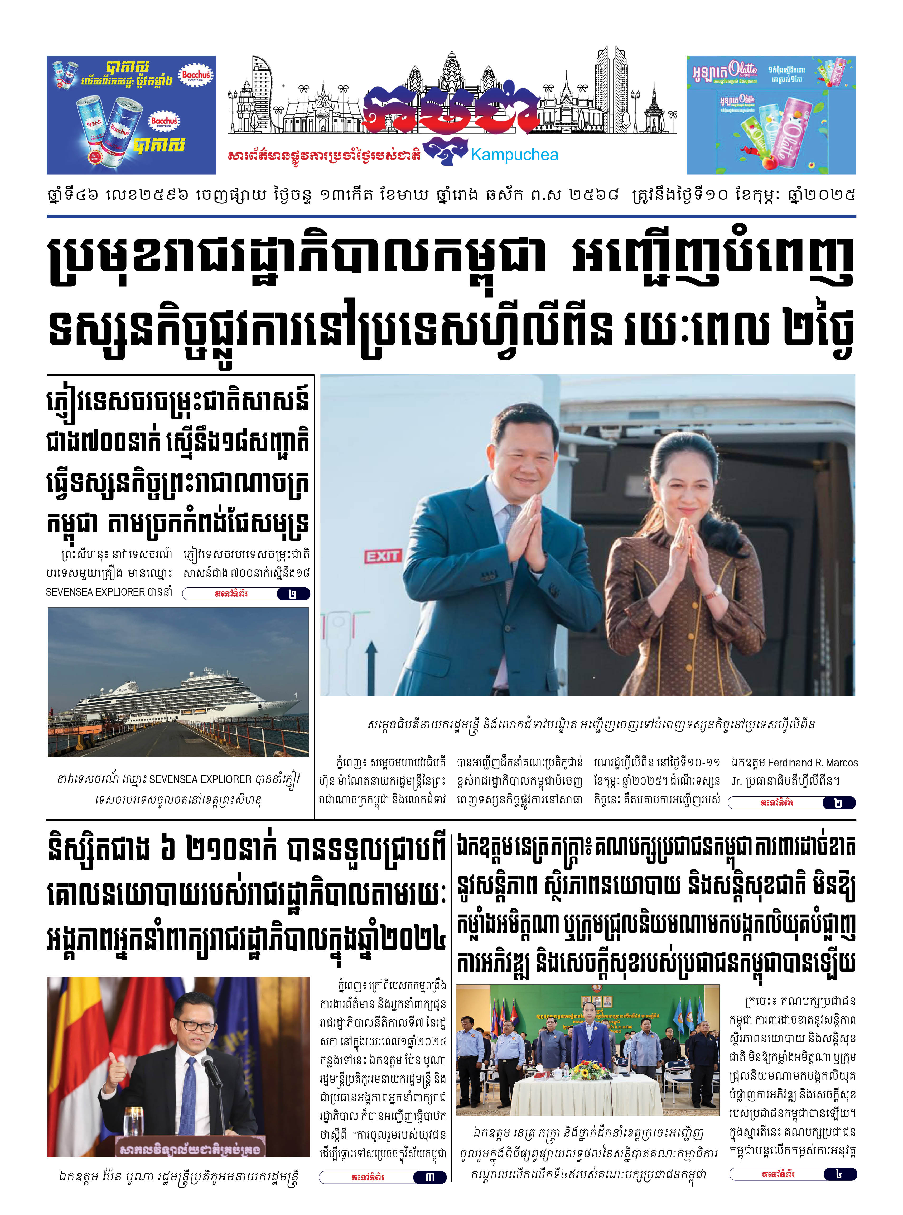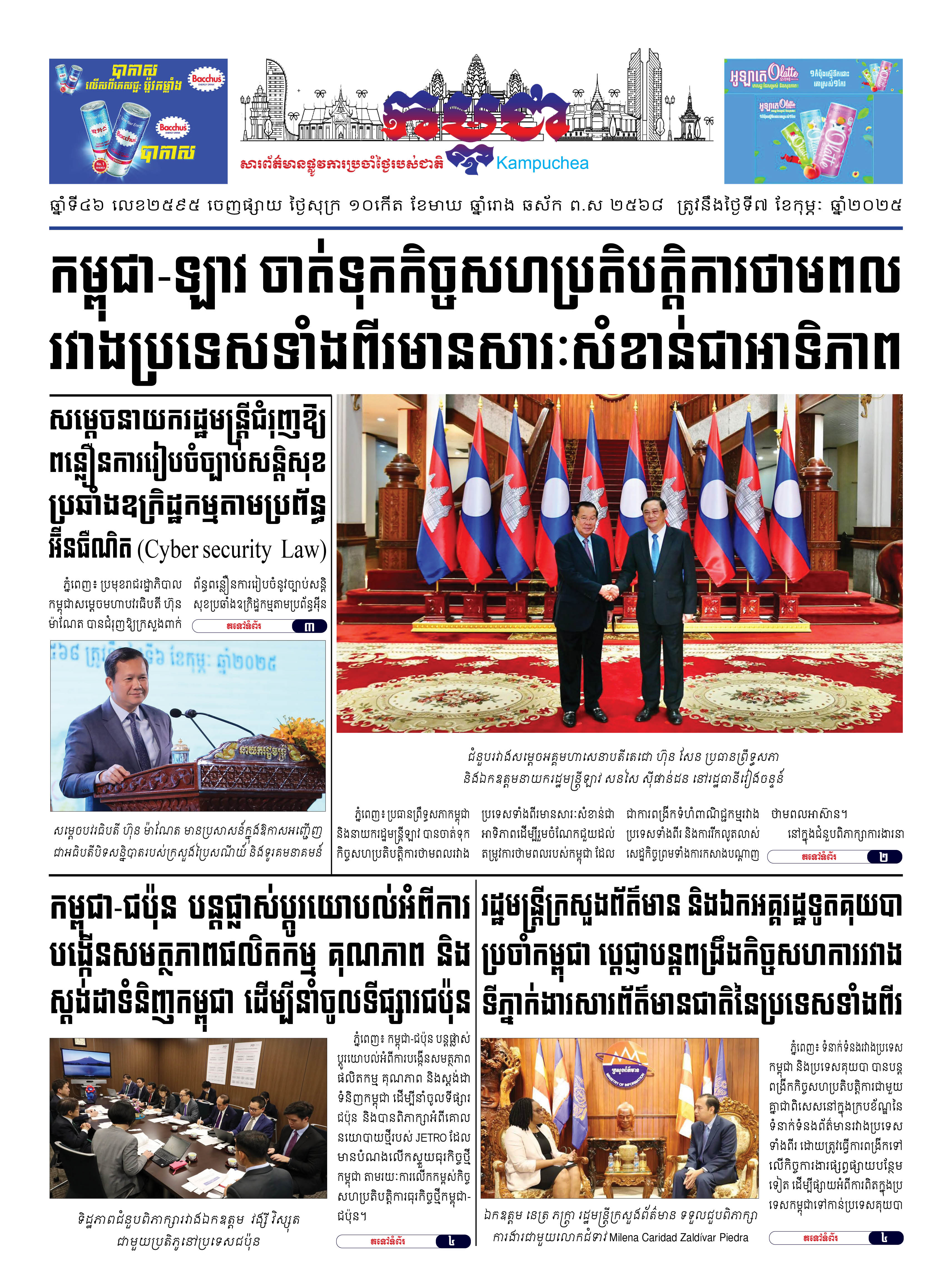 កាសែតកម្ពុជាលេខ២៥៩៥ ចេញផ្សាយថ្ងៃសុក្រ ទី០៧ ខែកុម្ភៈ ឆ្នាំ២០២៥