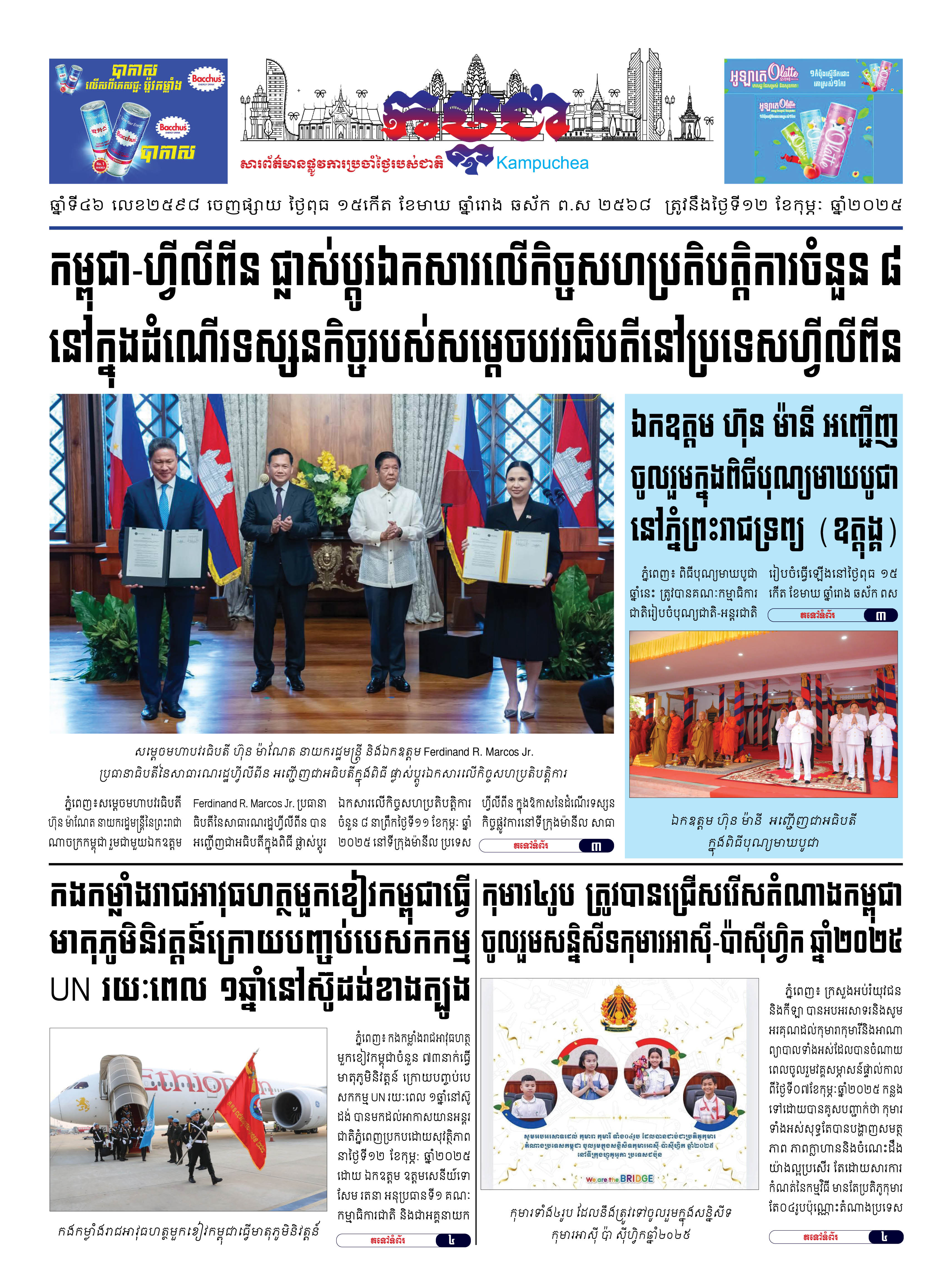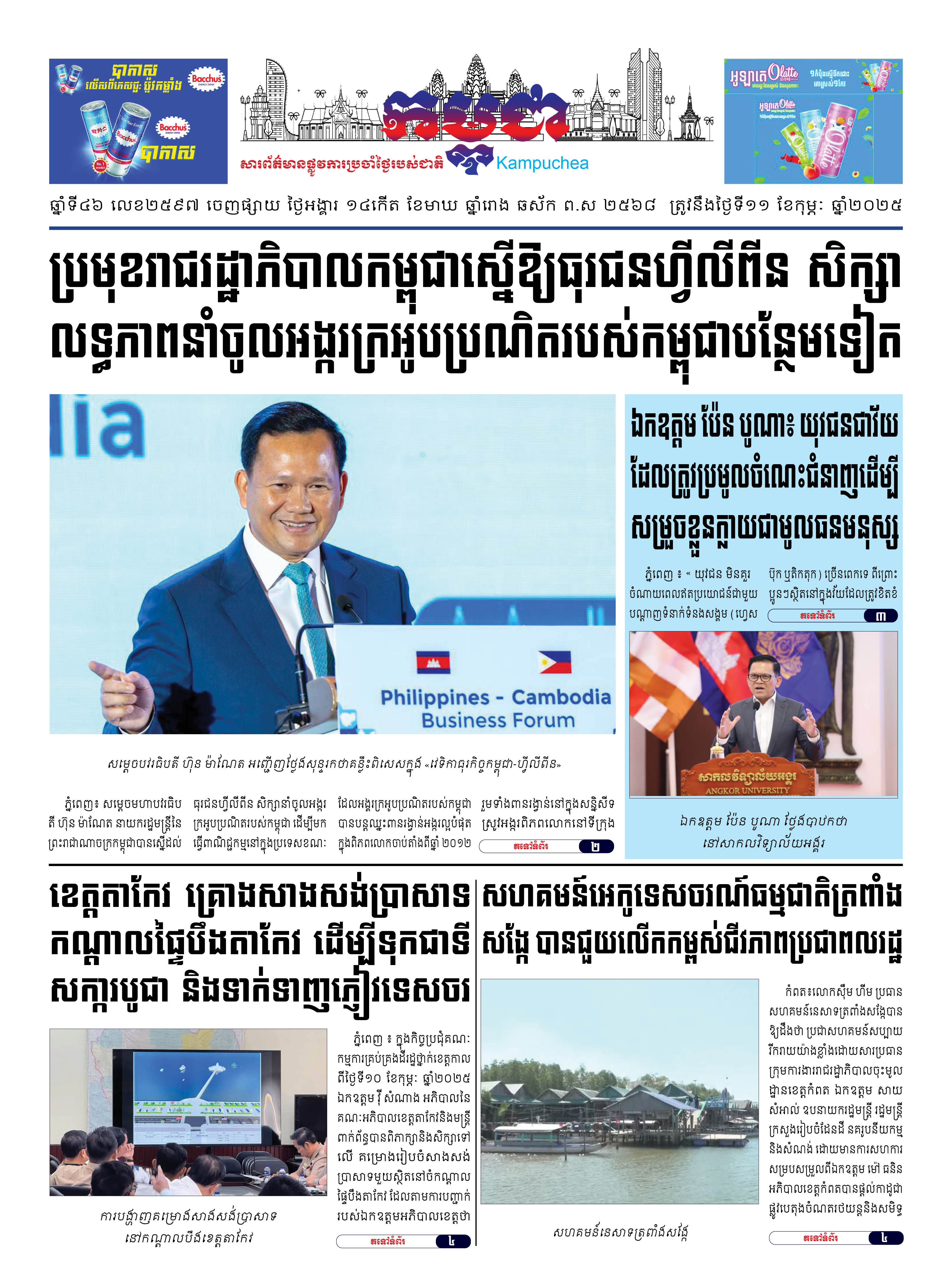 កាសែតកម្ពុជាលេខ២៥៩៨ ចេញផ្សាយថ្ងៃពុធ ទី១២ ខែកុម្ភៈ ឆ្នាំ២០២៥