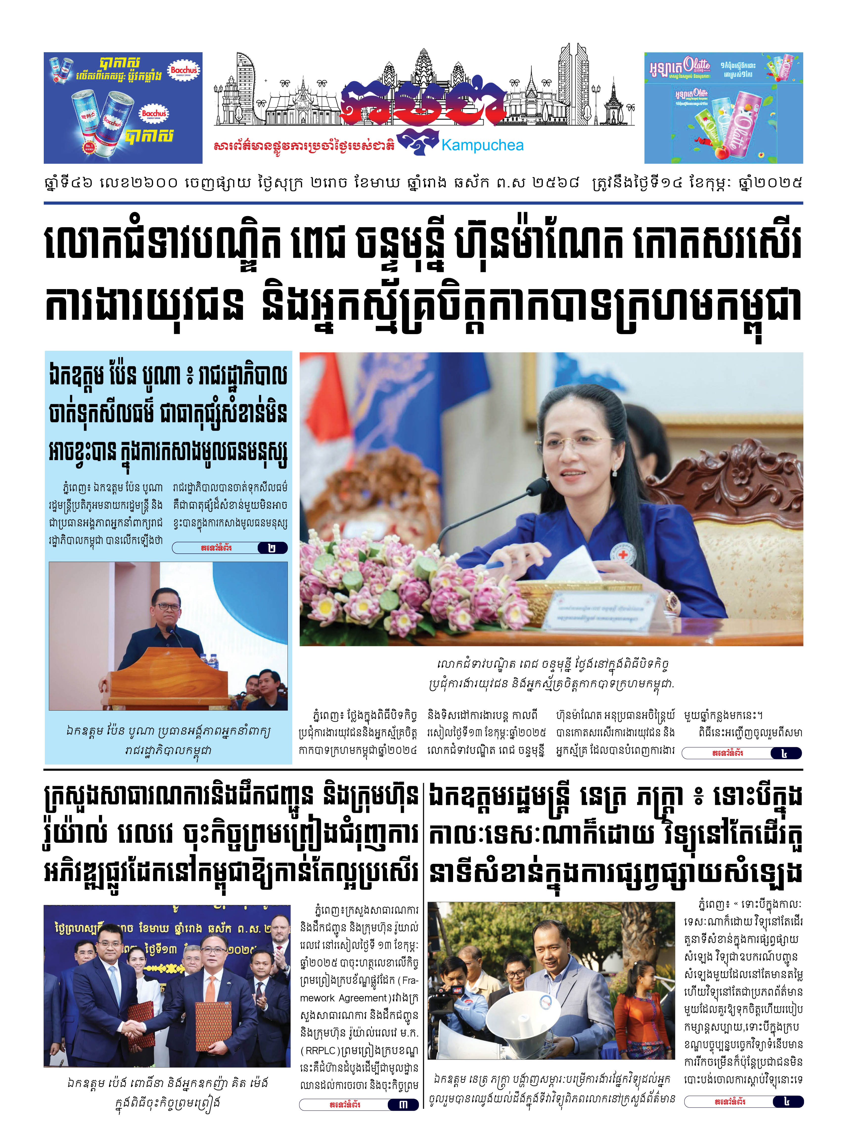 កាសែតកម្ពុជាលេខ២៦០០ ចេញផ្សាយថ្ងៃសុក្រ ទី១៤ ខែកុម្ភៈ ឆ្នាំ២០២៥