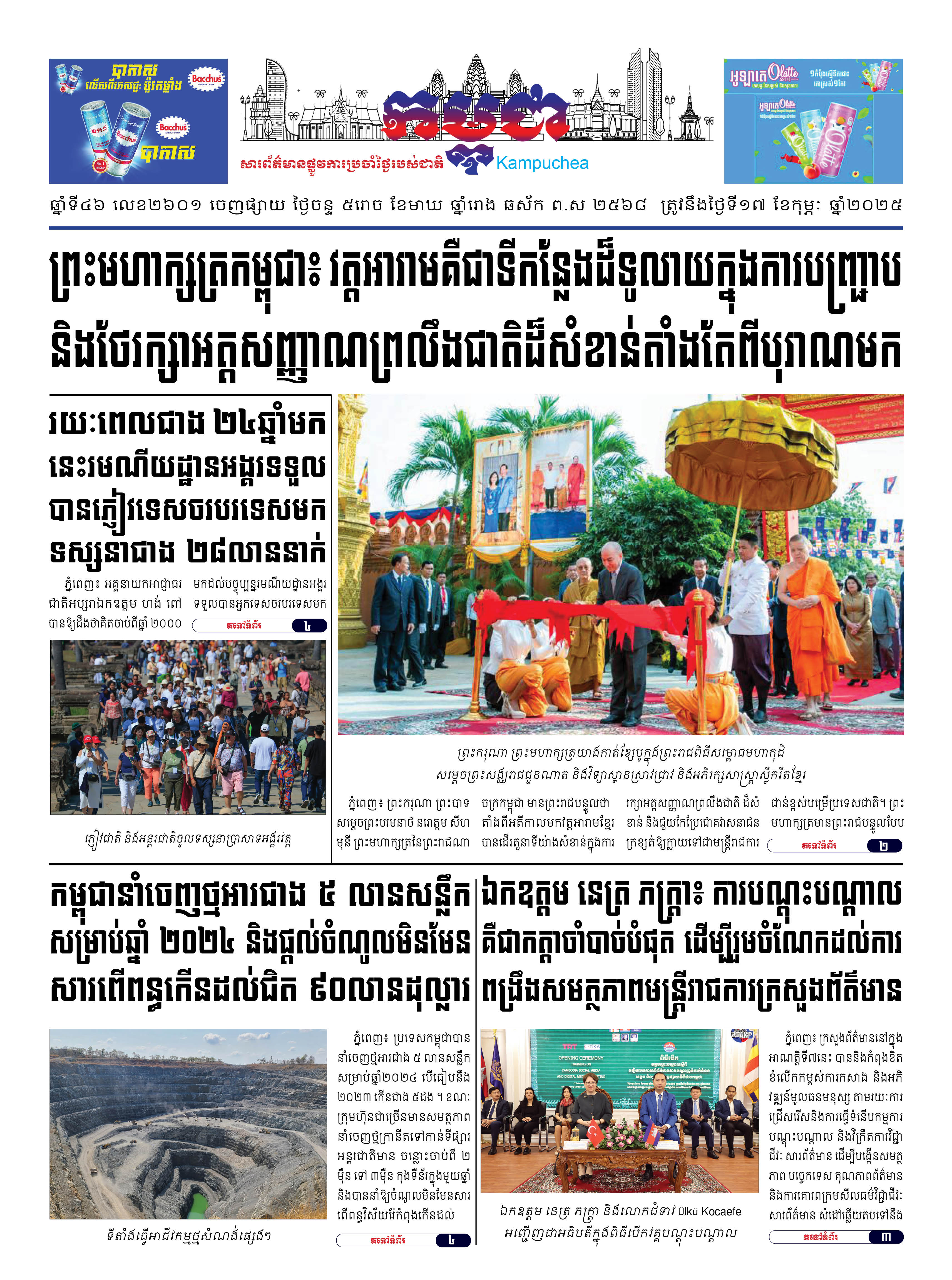 កាសែតកម្ពុជាលេខ២៦០១ ចេញផ្សាយថ្ងៃចន្ទ ទី១៧ ខែកុម្ភៈ ឆ្នាំ២០២៥