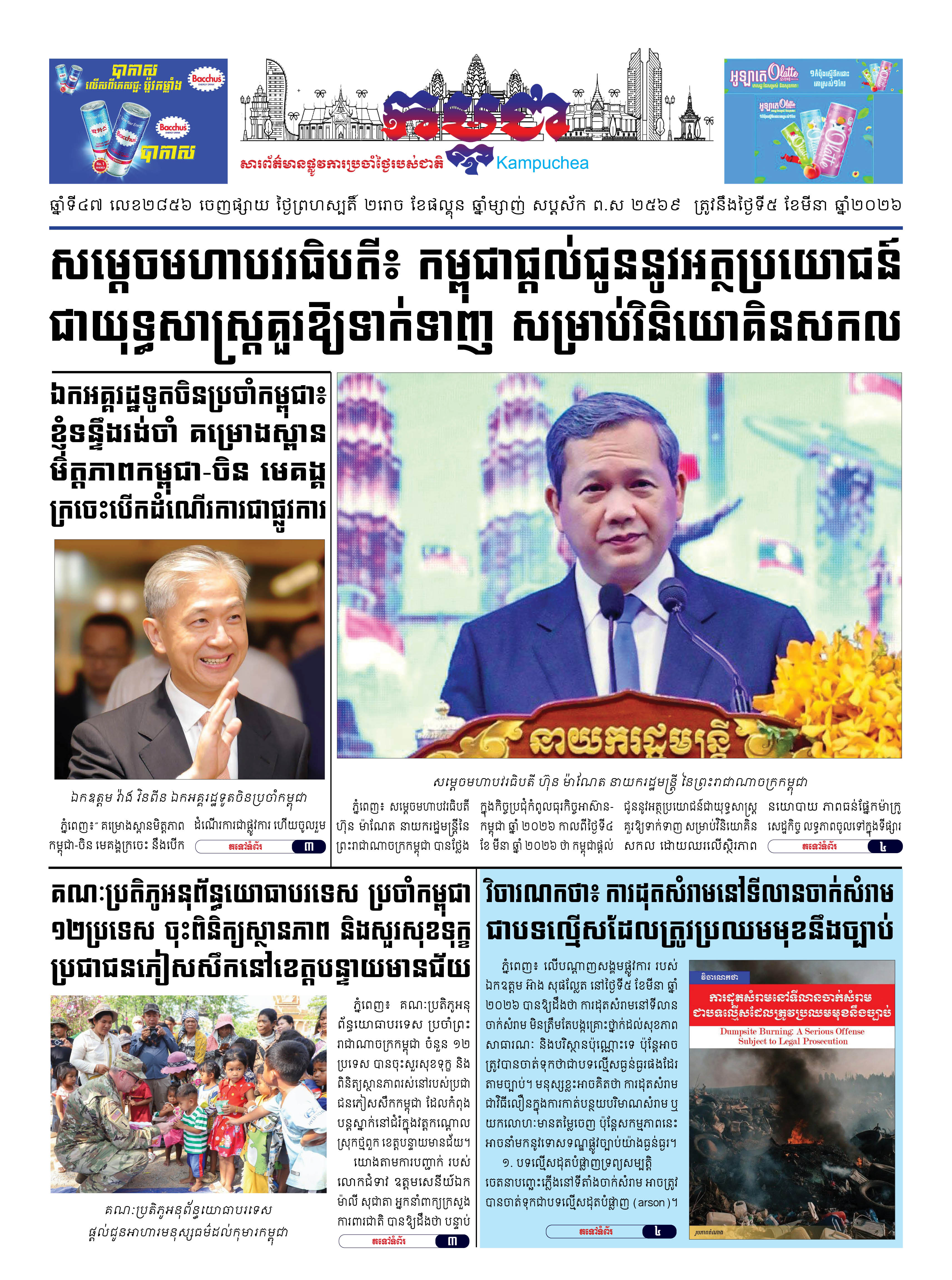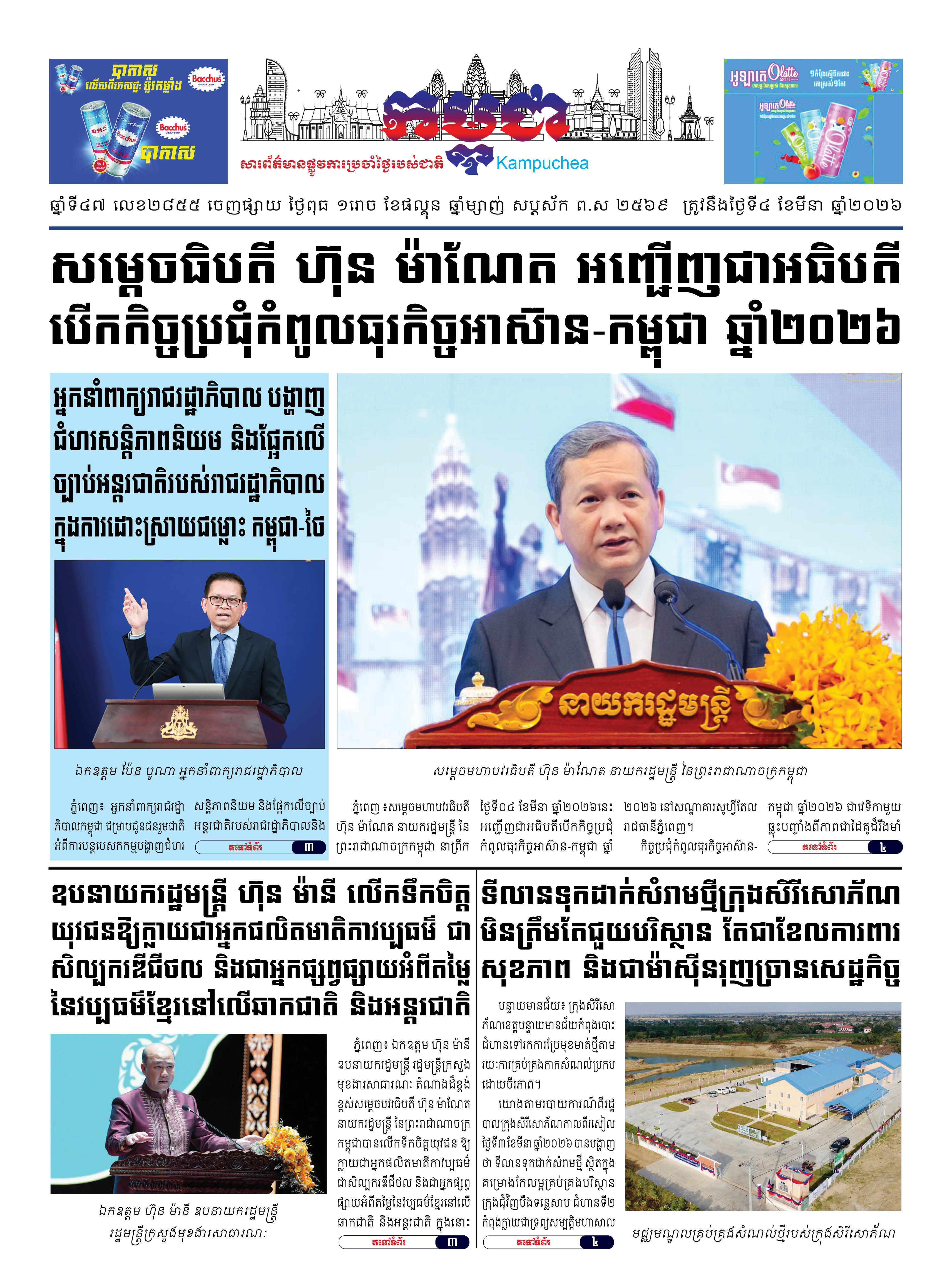 កាសែតកម្ពុជាលេខ២៨៥៨ ចេញផ្សាយថ្ងៃចន្ទ ទី០៩ ខែមីនា ឆ្នាំ២០២៦