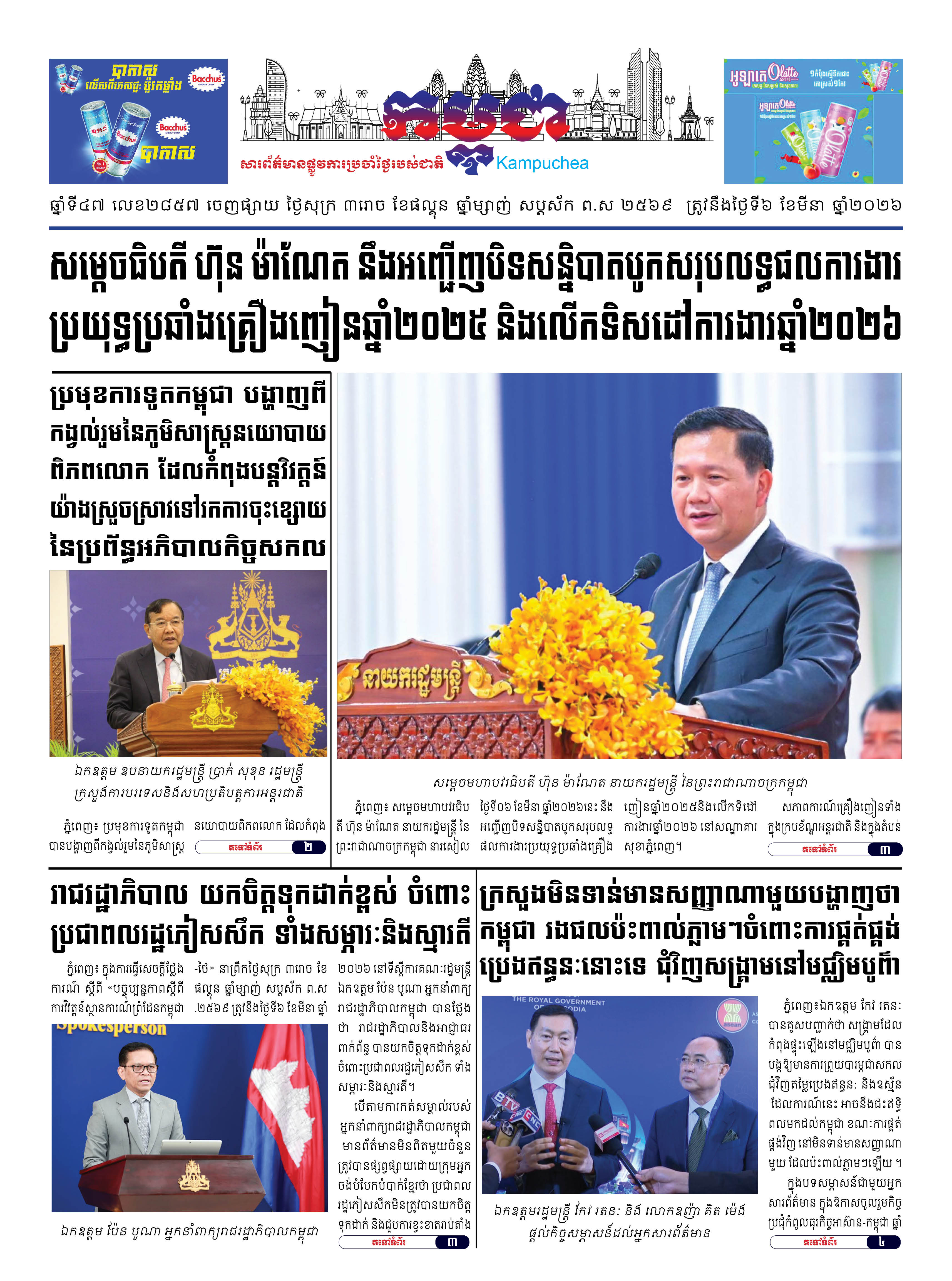 កាសែតកម្ពុជាលេខ២៨៥៦ ចេញផ្សាយថ្ងៃព្រហស្បតិ៍ ទី០៥ ខែមីនា ឆ្នាំ២០២៦