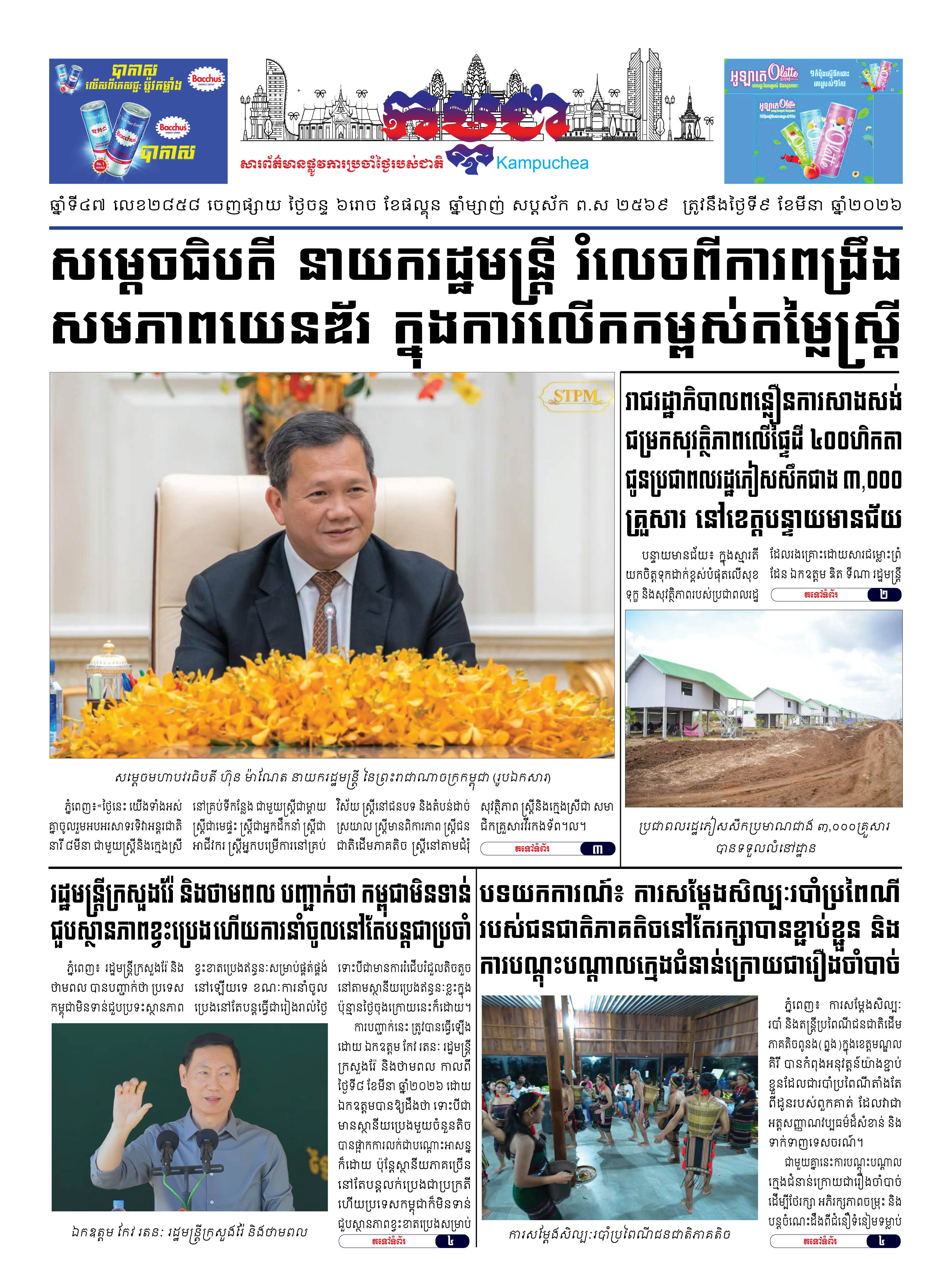 កាសែតកម្ពុជាលេខ២៨៥៧ ចេញផ្សាយថ្ងៃសុក្រ ទី០៦ ខែមីនា ឆ្នាំ២០២៦