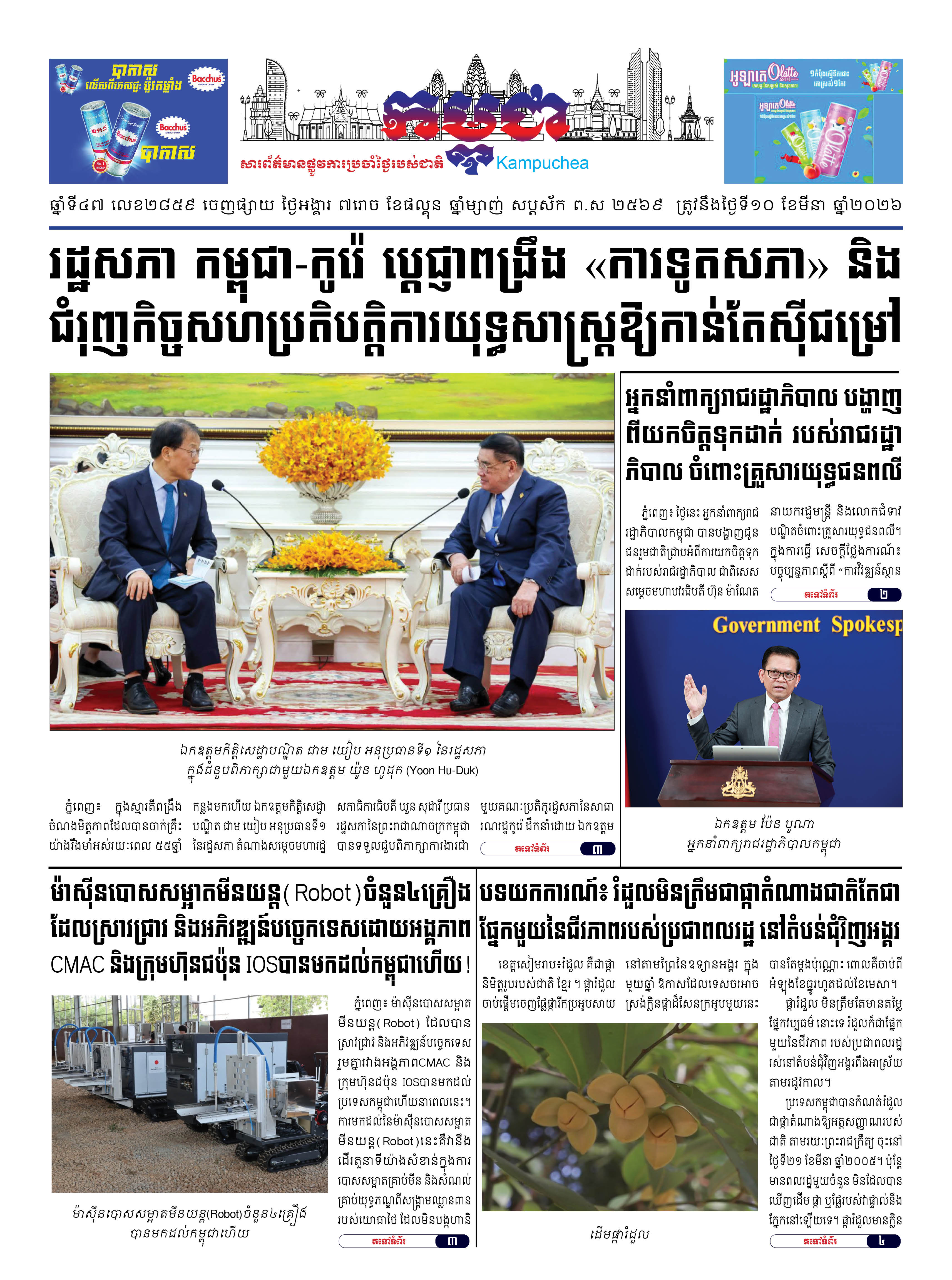 កាសែតកម្ពុជាលេខ២៨៥៩ ចេញផ្សាយថ្ងៃអង្គារ ទី១០ ខែមីនា ឆ្នាំ២០២៦