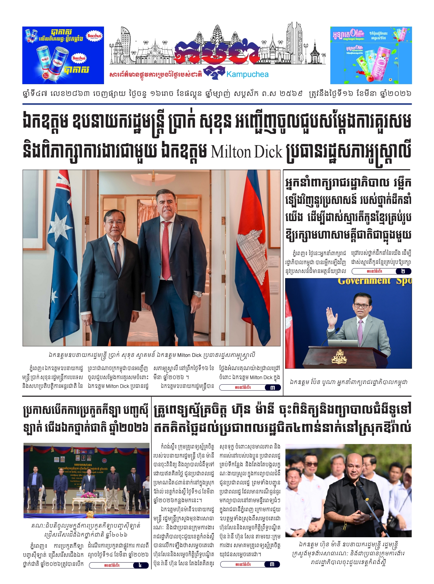 កាសែតកម្ពុជាលេខ២៨៦៣ ចេញផ្សាយថ្ងៃចន្ទ ទី១៦ ខែមីនា ឆ្នាំ២០២៦