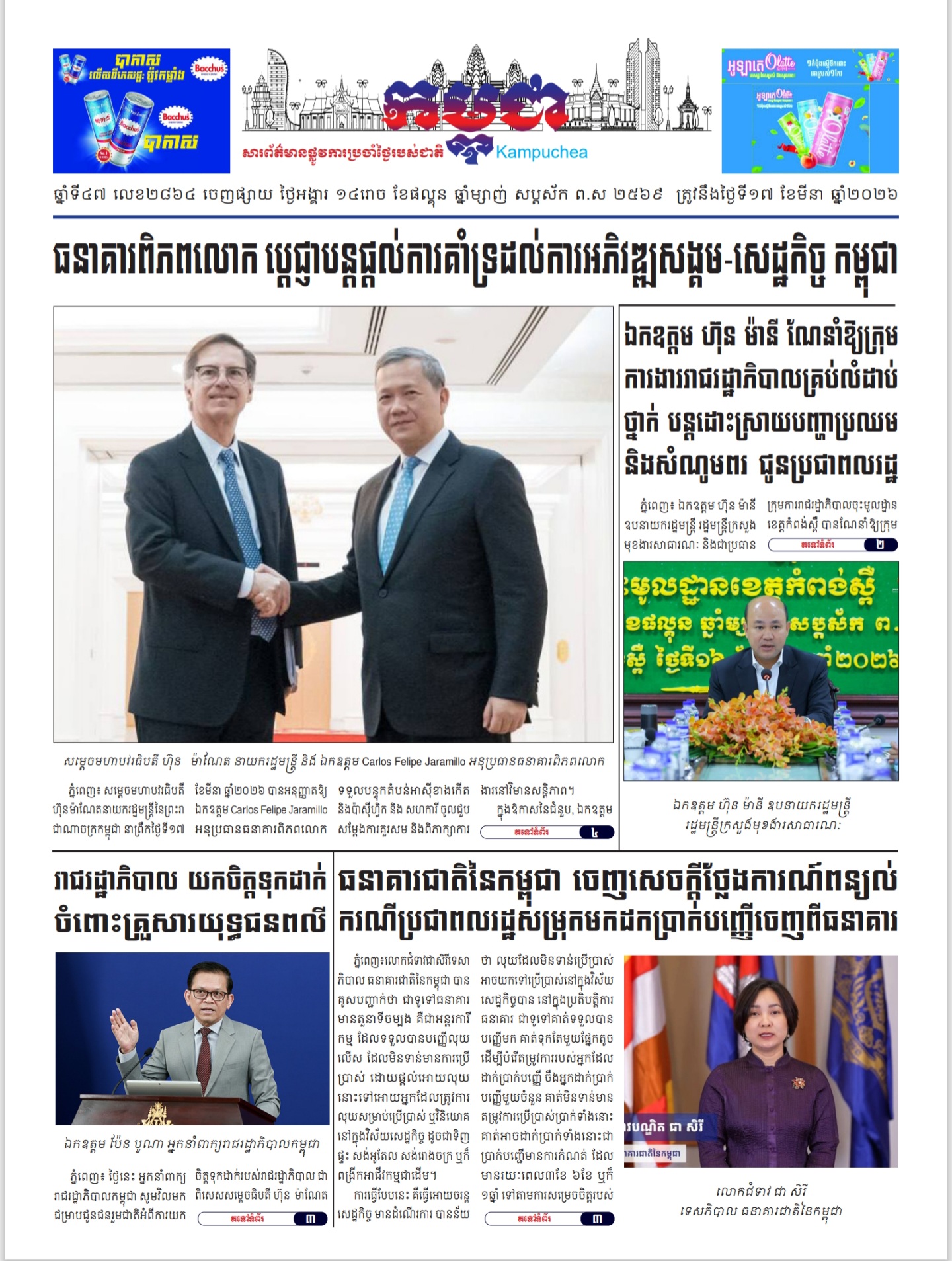 កាសែតកម្ពុជាលេខ២៨៦៤ ចេញផ្សាយថ្ងៃអង្គារ ទី១៧ ខែមីនា ឆ្នាំ២០២៦
