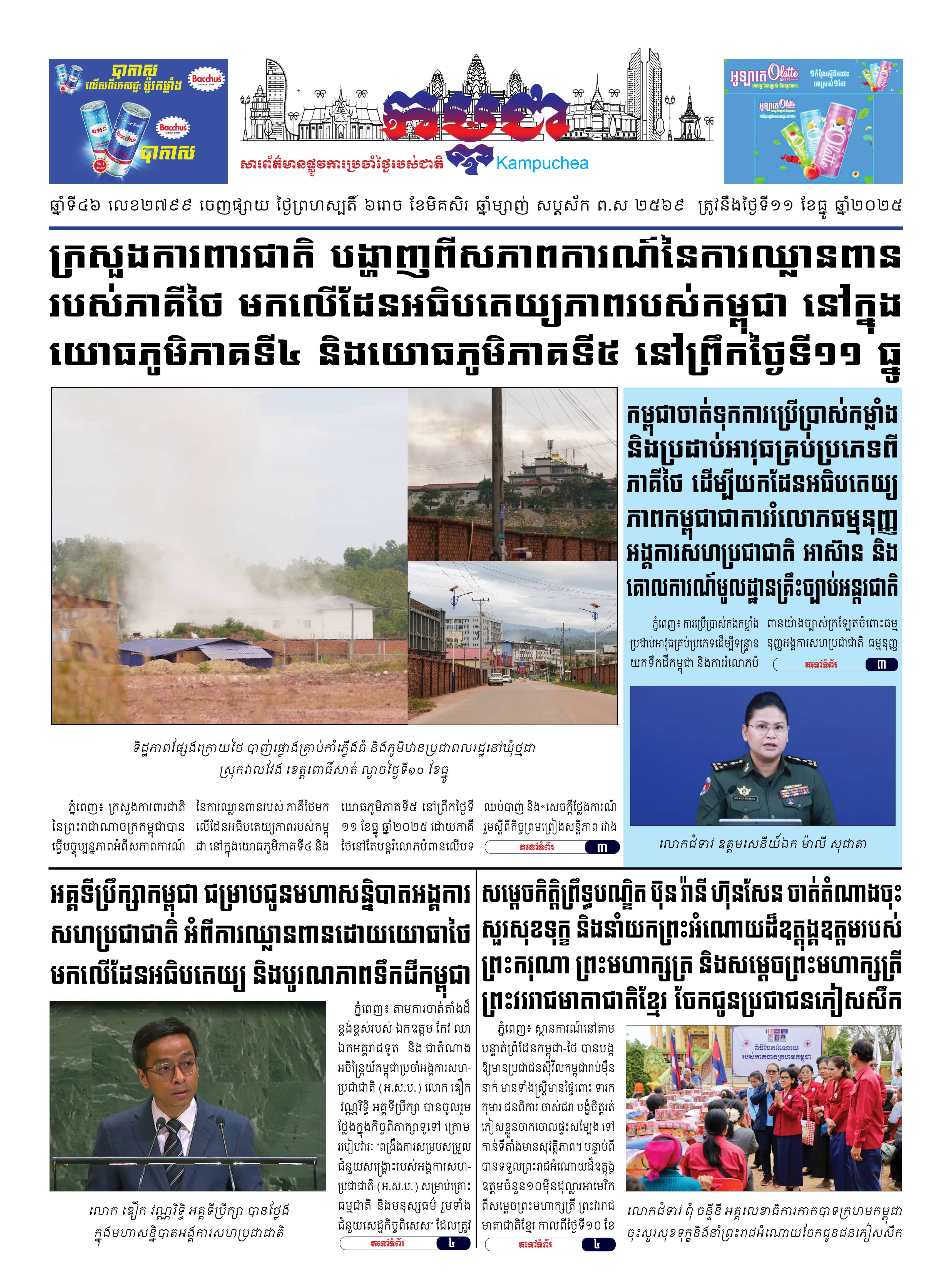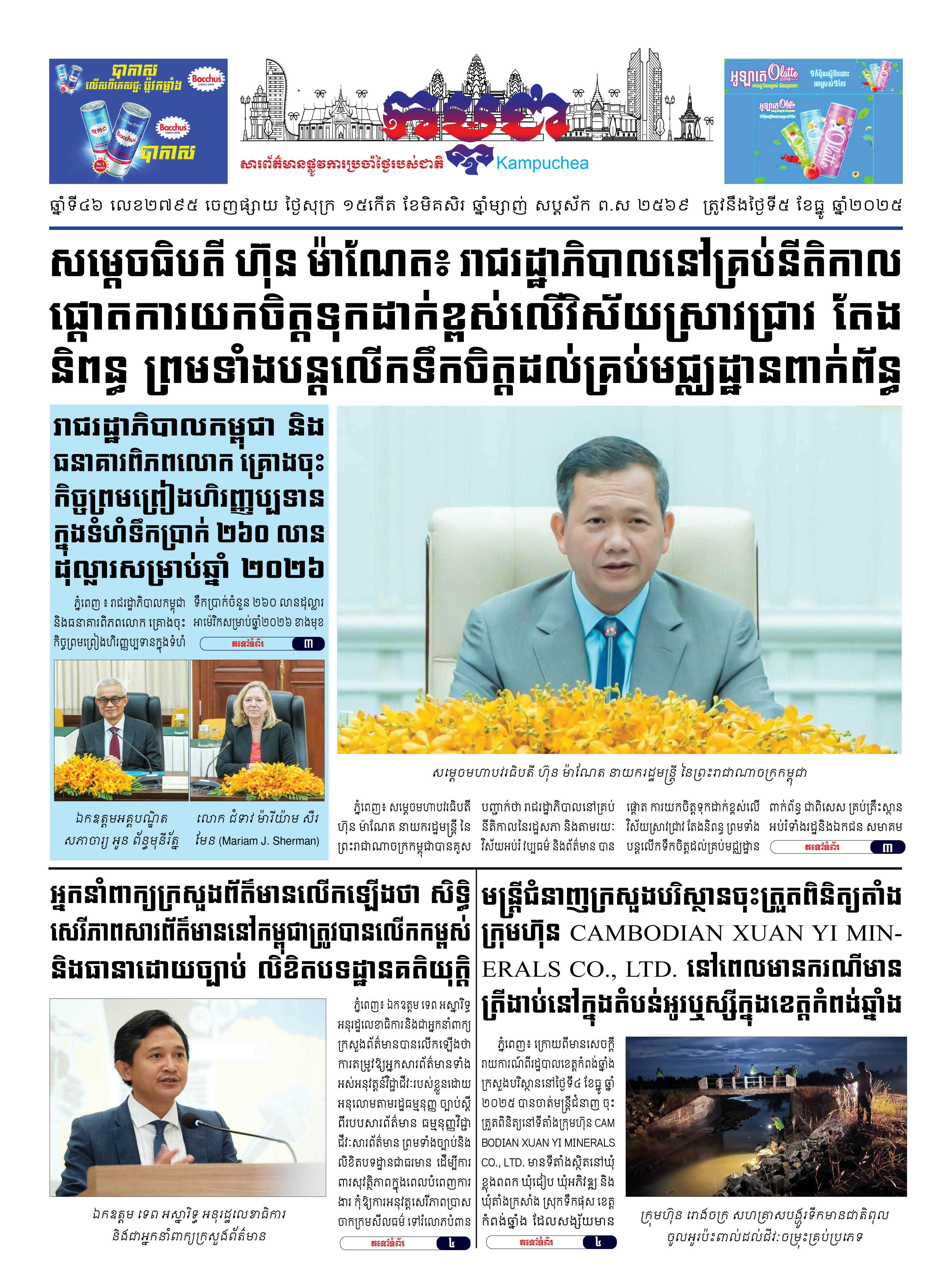 កាសែតកម្ពុជាលេខ២៧៩៥ ចេញផ្សាយថ្ងៃសុក្រ ទី០៥ ខែធ្នូ ឆ្នាំ២០២៥