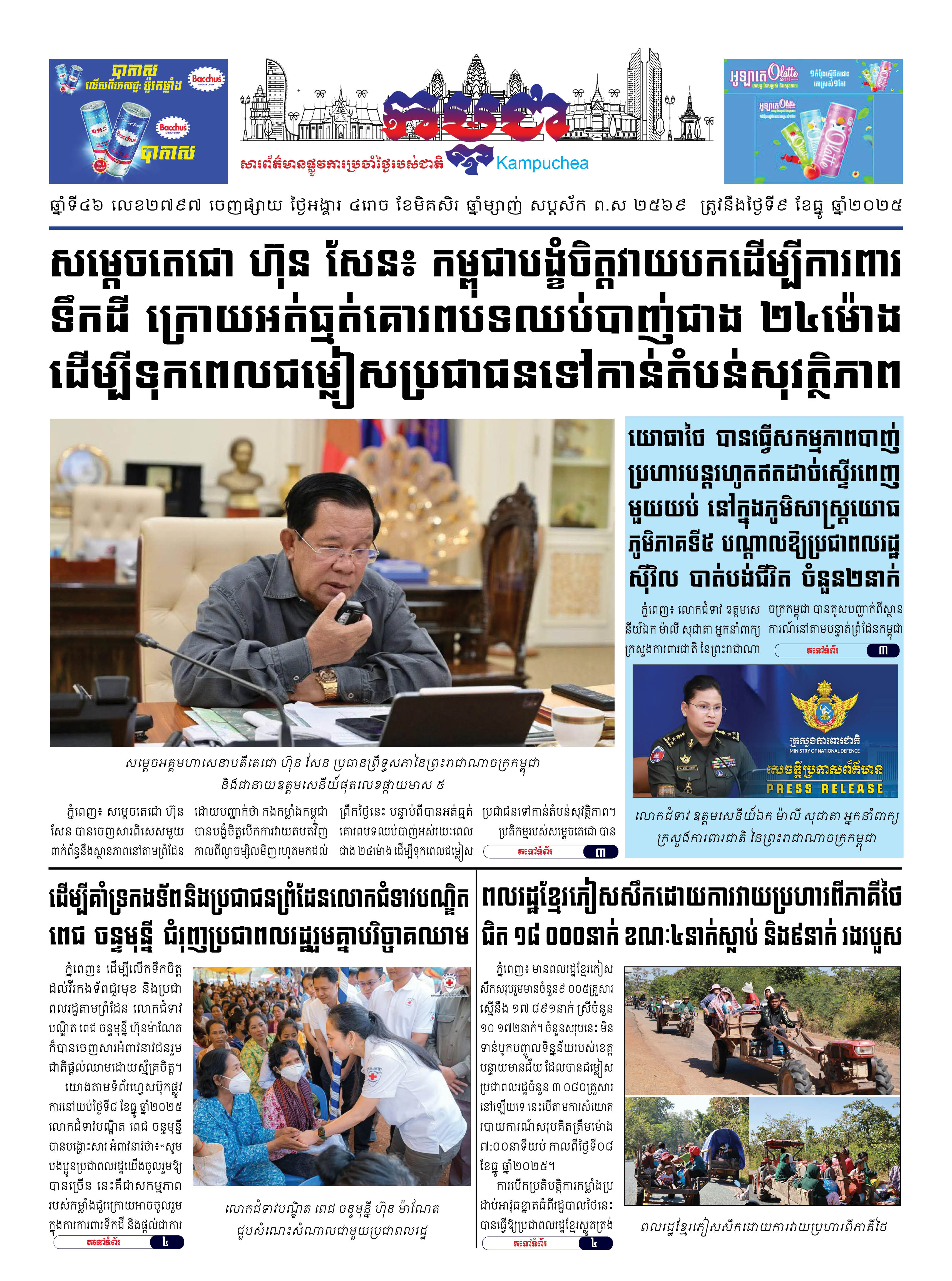 កាសែតកម្ពុជាលេខ២៧៩៧ ចេញផ្សាយថ្ងៃអង្គារ ទី០៩ ខែធ្នូ ឆ្នាំ២០២៥