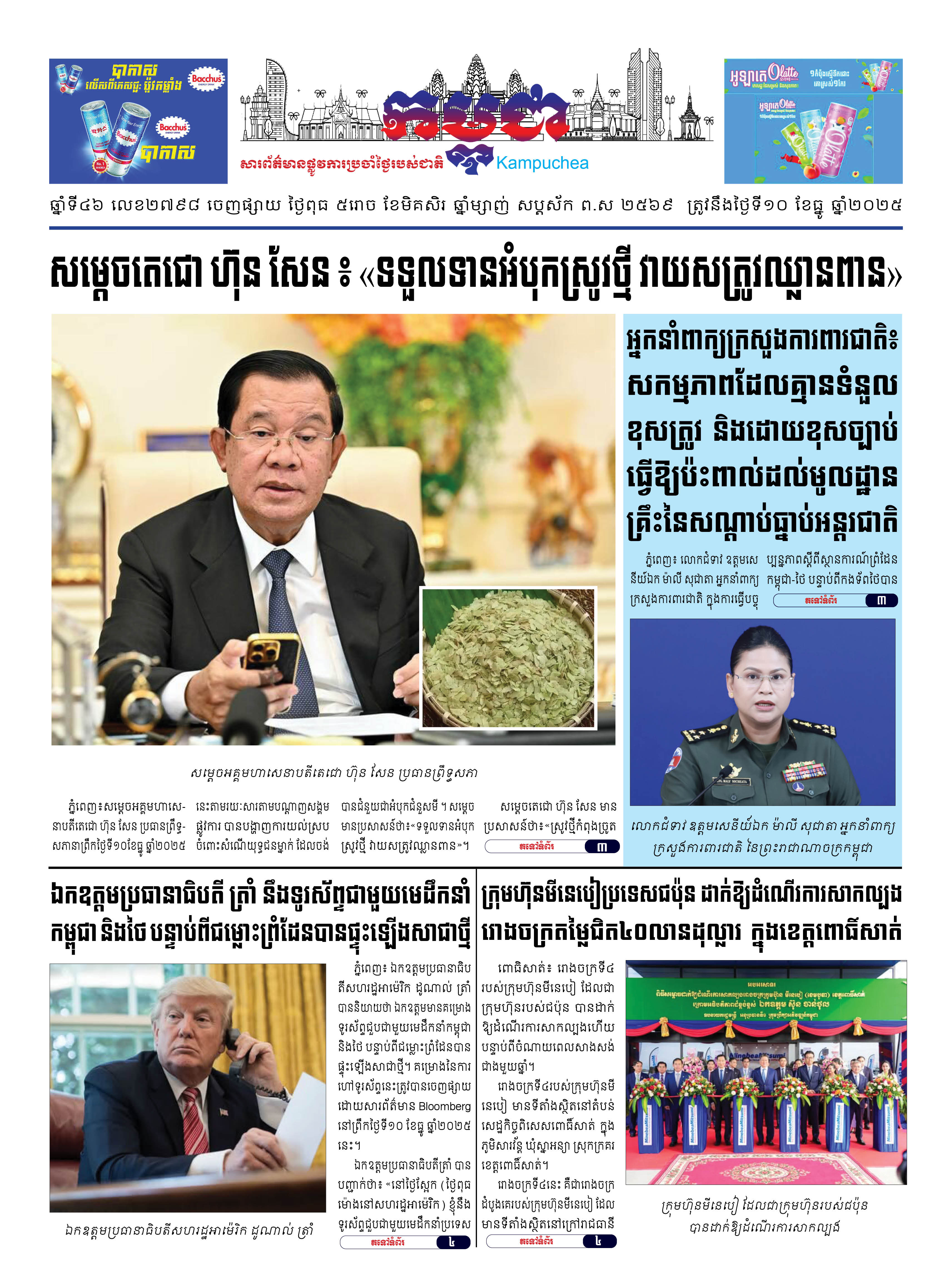 កាសែតកម្ពុជាលេខ២៧៩៨ ចេញផ្សាយថ្ងៃពុធ ទី១០ ខែធ្នូ ឆ្នាំ២០២៥