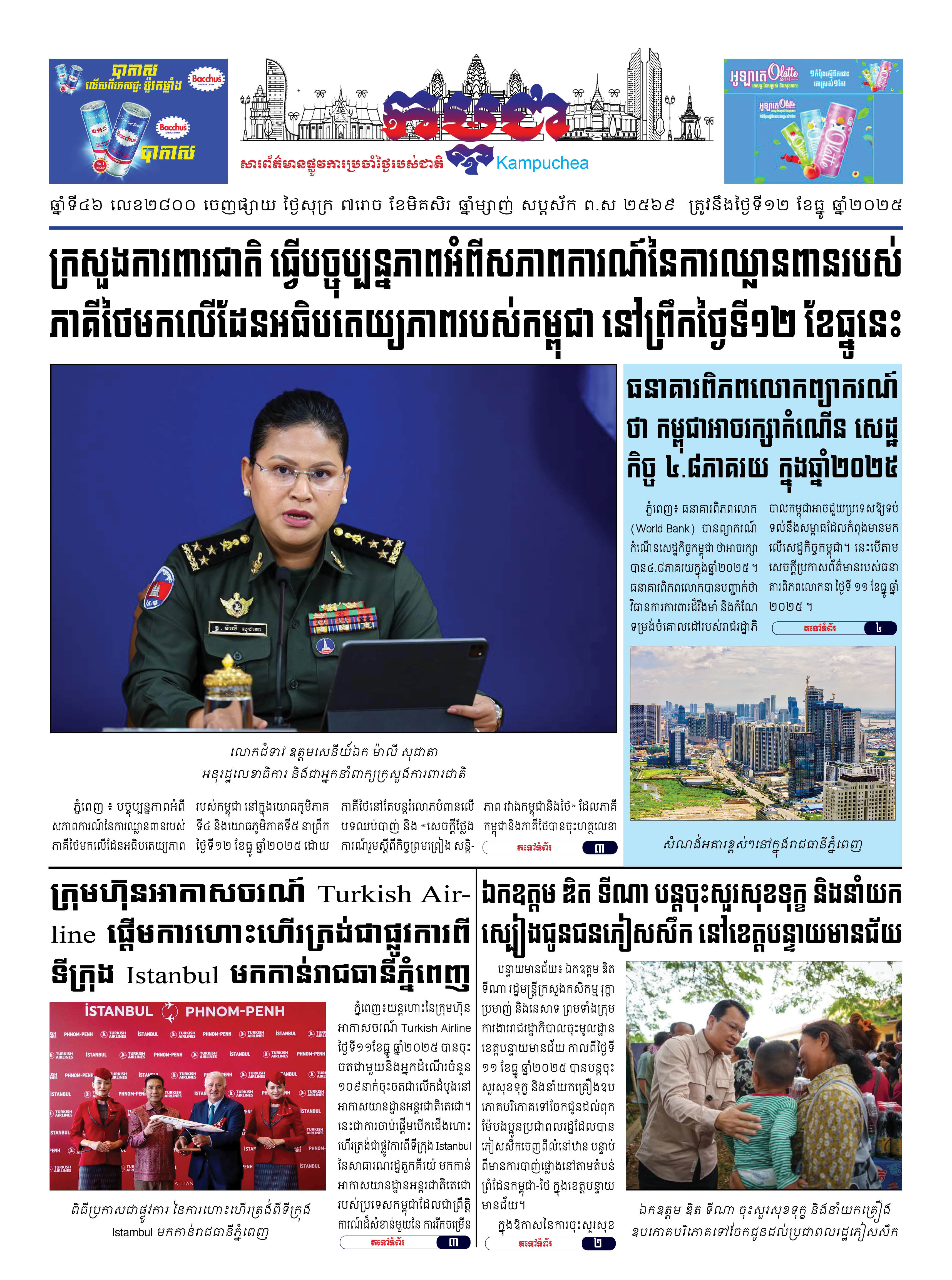 កាសែតកម្ពុជាលេខ២៨០០ ចេញផ្សាយថ្ងៃសុក្រ ទី១២ ខែធ្នូ ឆ្នាំ២០២៥