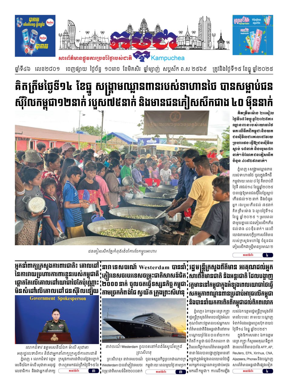 កាសែតកម្ពុជាលេខ២៨០១ ចេញផ្សាយថ្ងៃចន្ទ ទី១៥ ខែធ្នូ ឆ្នាំ២០២៥
