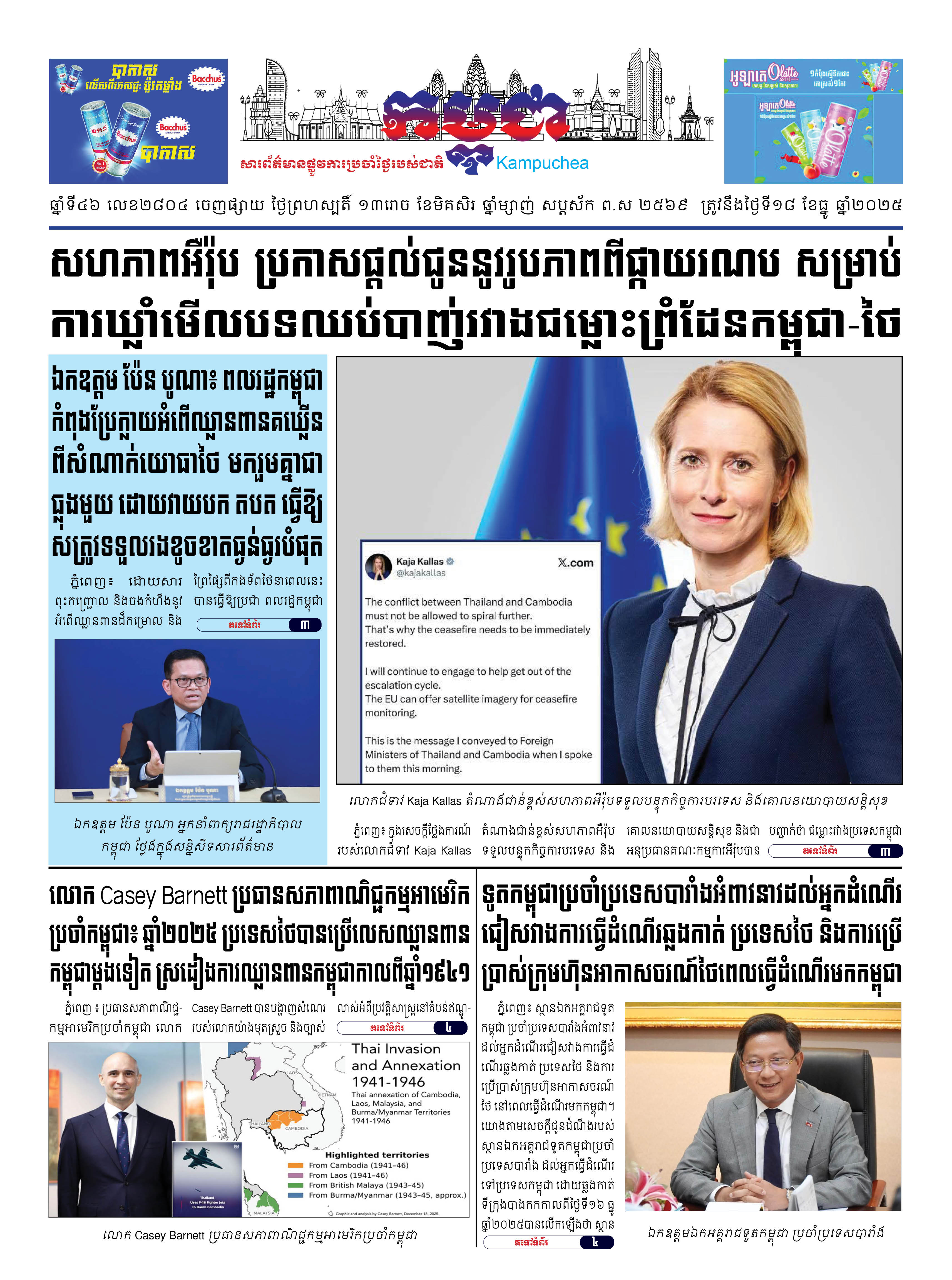 កាសែតកម្ពុជាលេខ២៨០៤ ចេញផ្សាយថ្ងៃព្រហស្បតិ៍ ទី១៨ ខែធ្នូ ឆ្នាំ២០២៥