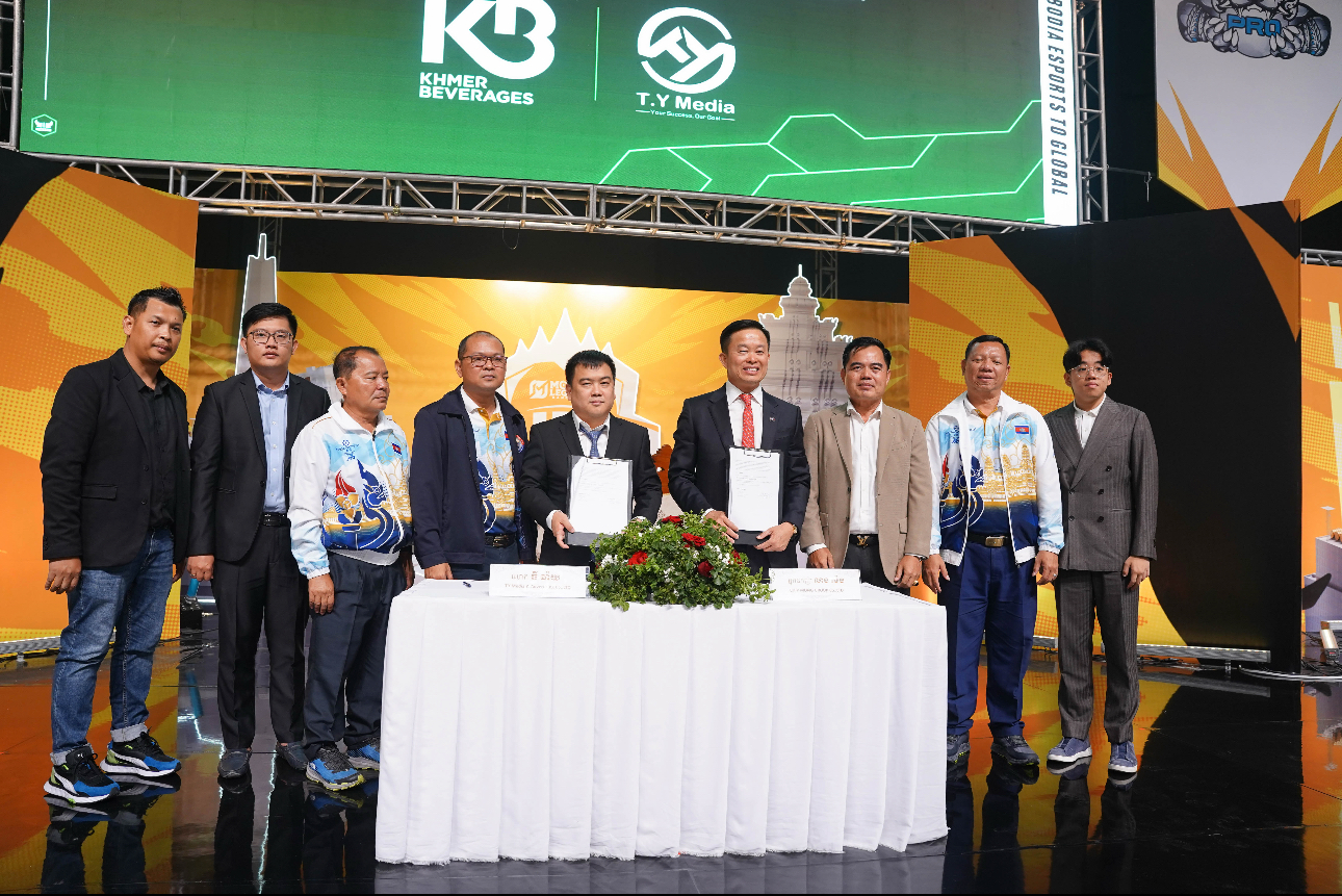 AKP ភ្នំពេញ ថ្ងៃទី៣០ ខែមេសា ឆ្នាំ២០២៥--ពិធីចុះហត្ថលេខាលើអនុស្សរណៈនៃការយោគយល់គ្នារវាងក្រុមហ៊ុន T.Y Media និងក្រុមហ៊ុន Khmer Beverages ដើម្បីបង្កើតព្រឹត្តិការណ៍ប្រកួតកីឡាអេឡិចត្រូនិកអន្តរជាតិ VIKINGZ WARRIOR MEKONG INVITATIONAL 2025 ត្រូវបានប្រារព្ធធ្វើឡើងថ្មីៗនេះ ក្រោមក្រោមវត្តមានឯកឧត្តម លន់ សាមឌី អគ...