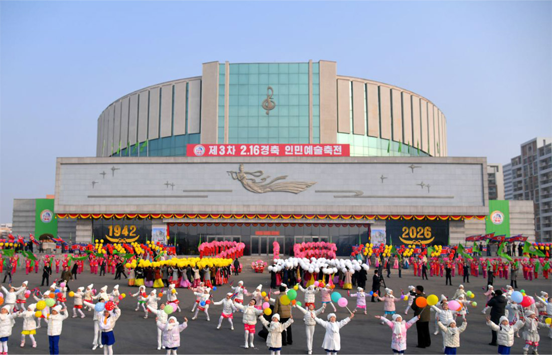 AKP ភ្នំពេញ ថ្ងៃទី២៤ ខែកុម្ភៈ ឆ្នាំ២០២៦– ពិធីបុណ្យសិល្បៈប្រជាជនលើកទីបីសម្រាប់ការអបអរសាទរថ្ងៃទី ១៦ ខែកុម្ភៈ ត្រូវបានប្រារព្ធឡើងនៅក្នុងរោងមហោស្រពនានាក្នុងតំបន់ផ្សេងៗគ្នានៃសាធារណរដ្ឋប្រជាធិបតេយ្យប្រជាមានិតកូរ៉េ ដើម្បីអបអរសាទរខួបលើកទី ៨៤ នៃកំណើតរបស់លោកប្រធាន គីម ជុងអ៊ីល។ ពិធីប...