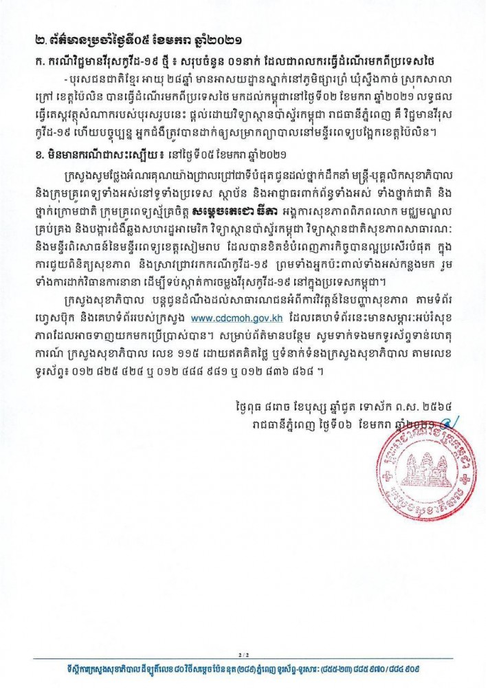 AKP ភ្នំពេញ ថ្ងៃទី០៦ ខែមករា ឆ្នាំ២០២១--
