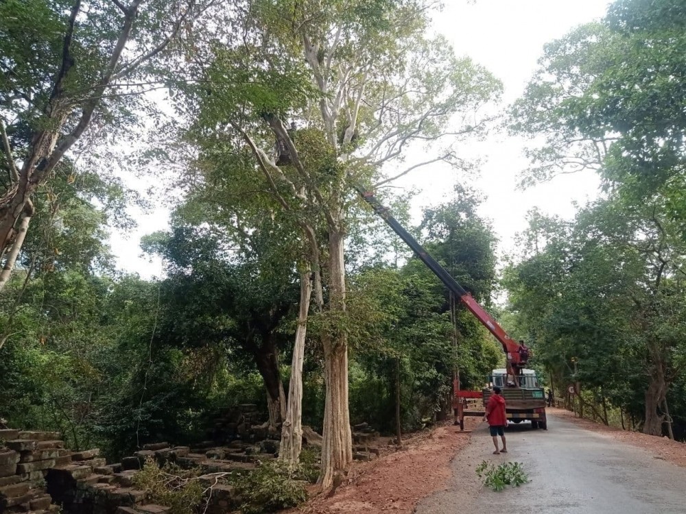 ក្រុមការងារនៃ អាជ្ញាធរជាតិអប្សរា បានបញ្ចប់ការដកហូតដើមឈើទាលងាប់មួយដើម ក្នុងបរិវេណប្រាសាទបន្ទាយប្រី ដើម្បីគ្រប់គ្រងហានិភ័យដល់ប្រាសាទ និងភ្ញៀវទេសចរ