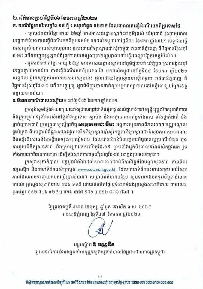 AKP ភ្នំពេញ ថ្ងៃទី០៧ ខែមករា ឆ្នាំ២០២១ --