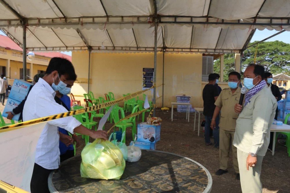 អភិបាលខេត្តបន្ទាយមានជ័យ បន្តចុះចែកអំណោយសម្តេចតេជោ ហ៊ុន សែន ដល់ពលករវិលត្រឡប់ពីថៃកំពុងធ្វើចត្តាឡីស័កនៅតាមមណ្ឌល