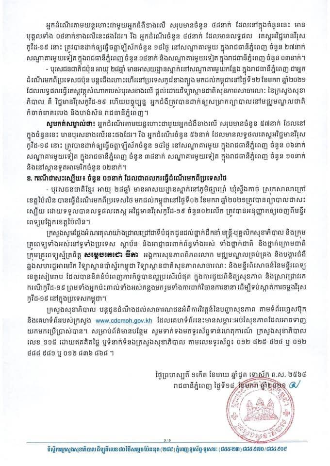 AKP ភ្នំពេញ ថ្ងៃទី១៤ ខែមករា ឆ្នាំ២០២១--
