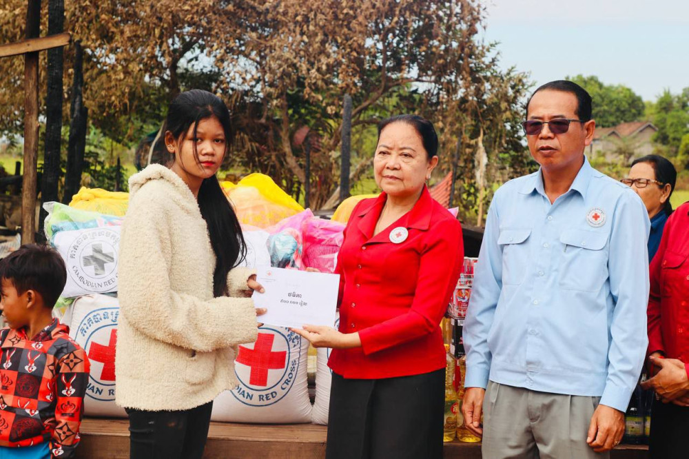 AKP កំពង់ធំ ថ្ងៃទី០២ ខែមករា ឆ្នាំ២០២៥ -- លោកស្រី លំ គន្ធារី អភិបាលរងខេត្ត និងជាប្រធានស្តីទីគណៈកម្មាធិការសាខាកាកបាទក្រហមកម្ពុជាខេត្តកំពង់ធំ មន្រ្តីសាខា និងលោក សាយ គឹមឡមអភិបាលស្រុក និងជាប្រធានអនុសាខាកាកបាទក្រហមកម្ពុជាស្រុកស្ទោង និងក្រុមការងារបានចុះសួរសុខទុក្ខ និងនាំយកអំណោយរបស់សាខាកាកបាទក្រហមកម្ពុជាខេត្តកំពង់ធំ ទៅប្រគល់ជូនប្រជាពលរដ្ឋរងគ្រោះដោយភ្លើងឆេះផ្ទះចំនួន៣គ្រួសារដែលបណ្ដាលមកពីឆ្លងចរន្តអគ្គិសនីស្ថិតនៅភូមិបត់ត្រង់ ឃុំម្សាក្រងស្រុកស្ទោង ខេត្តកំពង់ធំ នាព្រឹកថ្ងៃទី០២ ខែមករា ឆ្នាំ២០២៥។
