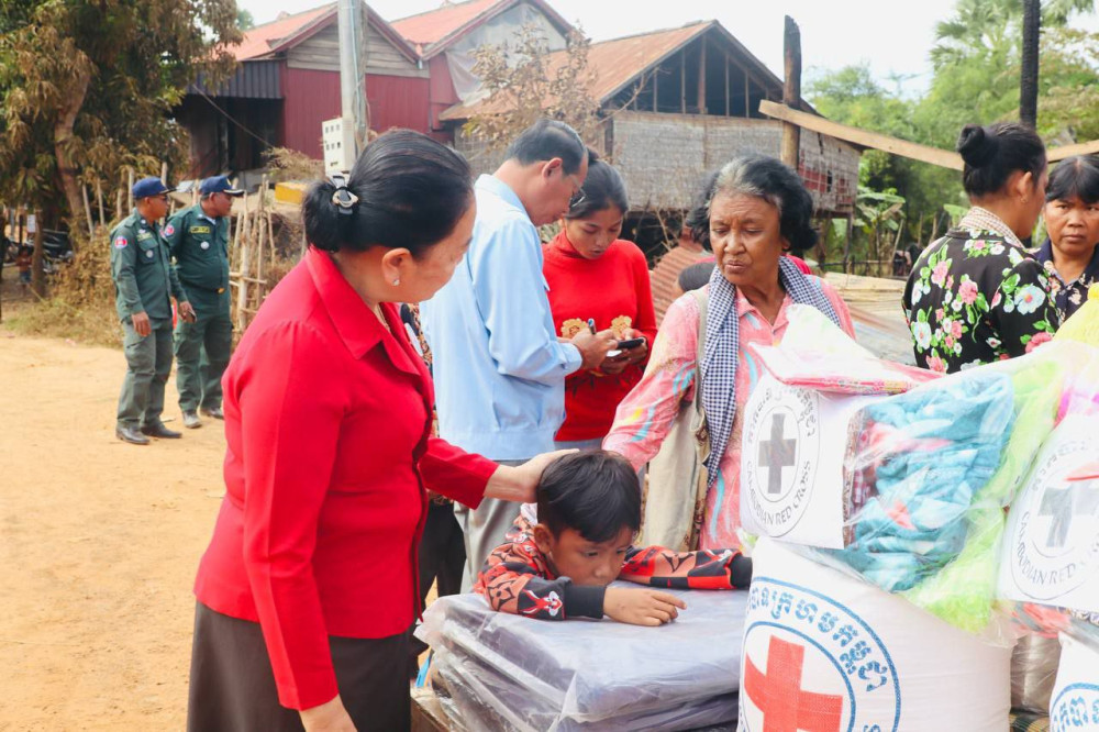 លោកស្រី លំ គន្ធារី នាំយកអំណោយប្រគល់ជូនគ្រួសាររងគ្រោះដោយភ្លើងឆេះផ្ទះនៅស្រុកស្ទោង