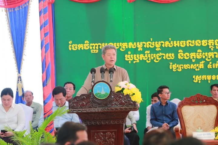 ការអំពាវនាវនេះធ្វើឡើងក្នុងឱកាសដែលឯកឧត្តម អភិបាលខេត្តកណ្តាលចូលរួមក្នុងពិធីចែក វិញ្ញាបនបត្រសម្គាល់ម្ចាស់អចលនវត្ថុជូនបងប្អូនប្រជាពលរដ្ឋ ស្ថិតនៅភូមិឫស្សីជ្រោយ និងភូមិជ្រោយមេត្រីក្រោម ឃុំឫស្សីជ្រោយ និងភូមិក្រោម ឃុំព្រែកអញ្ចាញ ស្រុកមុខកំពូល ខេត្តកណ្តាល នៅថ្ងៃទី០២ ខែមករា ឆ្នាំ២០២៥៕