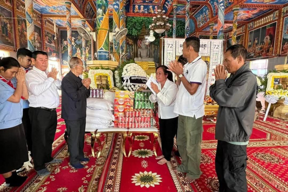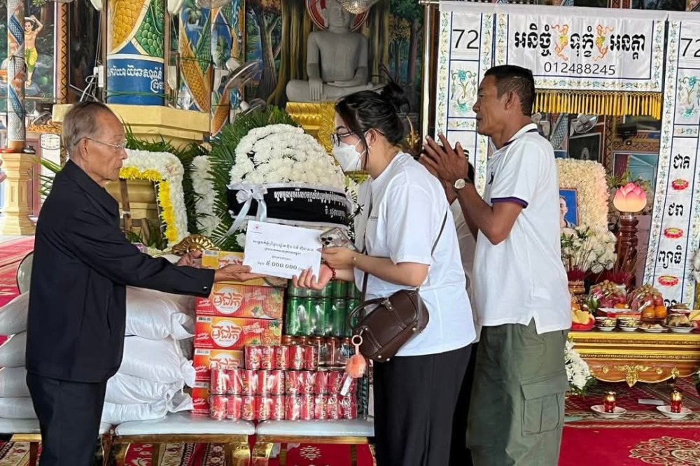 ជាមួយនឹងការរំលែកទុក្ខនេះ កាកបាទក្រហមកម្ពុជាដែលមានសម្តេចព្រះមហាក្សត្រី នរោត្តម មុនិនាថ សីហនុ ព្រះវររាជមាតាជាតិខ្មែរ គង់ប្រថាប់ជាព្រះប្រធានកិត្តិយស និងសម្តេចកិត្តិព្រឹទ្ធបណ្ឌិត ប៊ុន រ៉ានី ហ៊ុនសែន ជាប្រធាន បានចូលរួមបុណ្យសពនូវថវិកាចំនួន១៥លានរៀល និងគ្រឿងឧបភោគបរិភោគមួយចំនួនទៀត សម្រាប់ចាត់ចែងធ្វើបុណ្យតាមប្រពៃណី និងឧបត្ថម្ភថវិកាចំនួន១០លានរៀលទៀត សម្រាប់ភរិយាដែលកំពុងសង្គ្រោះបន្ទាន់នៅប្រទេសវៀតណាម។