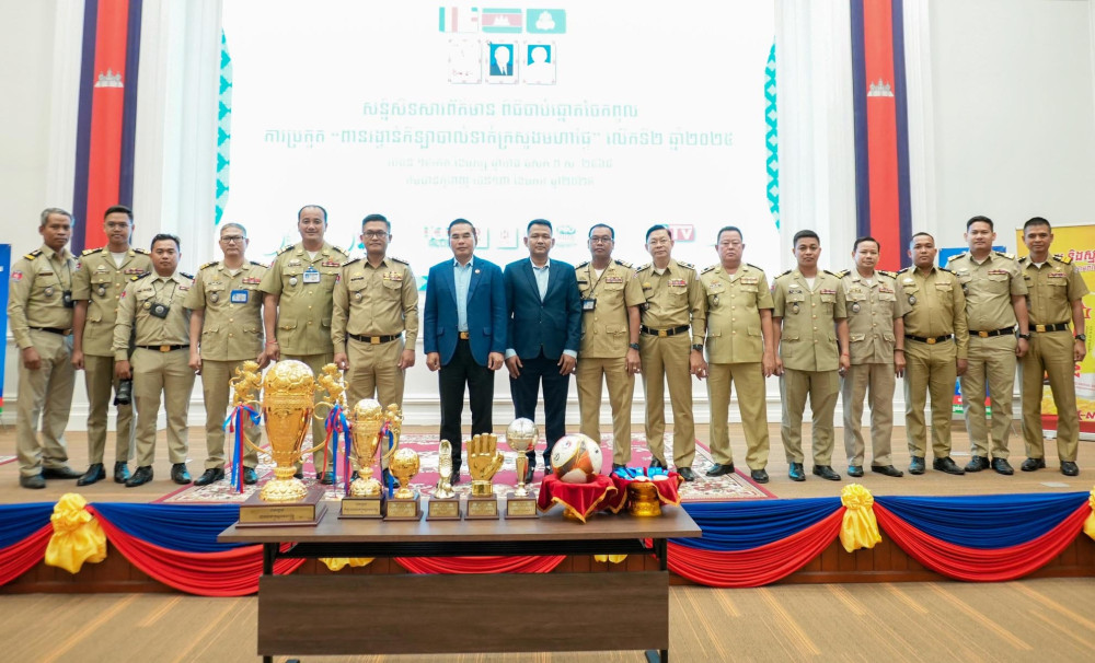 AKP ថ្ងៃទី១៤ ខែមករា ឆ្នាំ២០២៥--ឯកឧត្តម សរ សិទ្ធិ រដ្ឋលេខាធិការទទួលការងារអគ្គលេខាធិការដ្ឋាននៃក្រុមប្រឹក្សាក្រសួងមហាផ្ទៃបានគូសបញ្ជាក់ថា គោលដៅសំខាន់នៃការរៀបចំការប្រកួតកីឡាបាល់ទាត់ ពានរង្វាន់ក្រសួងមហាផ្ទៃនេះឡើង គឺដើម្បីឱ្យមន្ត្រីកងកម្លាំងអនុវត្តច្បាប់ក្រោមចំណុះក្រសួងមហាផ្ទៃបានចូលរួមលេងកីឡា ដើម្បីសុខភាព បង្កើនចំណងស្មារតីសាមគ្គីភាពរវាងអគ្គនាយកដ្ឋាន អគ្គលេខាធិការដ្ឋាន ក្រោមចំណុះក្រសួងមហាផ្ទៃ។