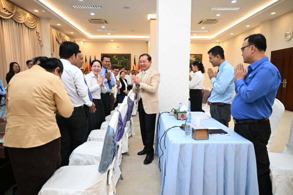 AKP ភ្នំពេញ ថ្ងៃទី១៤ ខែមករា ឆ្នាំ២០២៥-- ឯកឧត្តមសាស្រ្តាចារ្យ ឈាង រ៉ា រដ្ឋមន្រ្តីក្រសួងសុខាភិបាល បានអញ្ជើញជួបសំណេះសំណាល និងផ្ដល់អនុសាសន៍លើការអនុវត្តការងារ របស់ថ្នាក់ដឹកនាំទទួលបន្ទុក និងមន្រ្តីរាជការនៃនាយកដ្ឋានផែនការ និងព័ត៌មានសុខាភិបាល ក្រសួងសុខាភិបាល នាព្រឹកថ្ងៃទី១៤ ខែមករា ឆ្នាំ២០២៥ ដើម្បីផ្តល់ជាជំហរឱ្យកាន់តែរឹងមាំ និងបង្កើនប្រសិទ្ធភាពការងារបន្ថែមទៀត ក្នុងឆ្នាំថ្មីនេះជាពិសេសពាក់ព័ន្ធការងារផែនការ និងព័ត៌មានសុខាភិបាល។