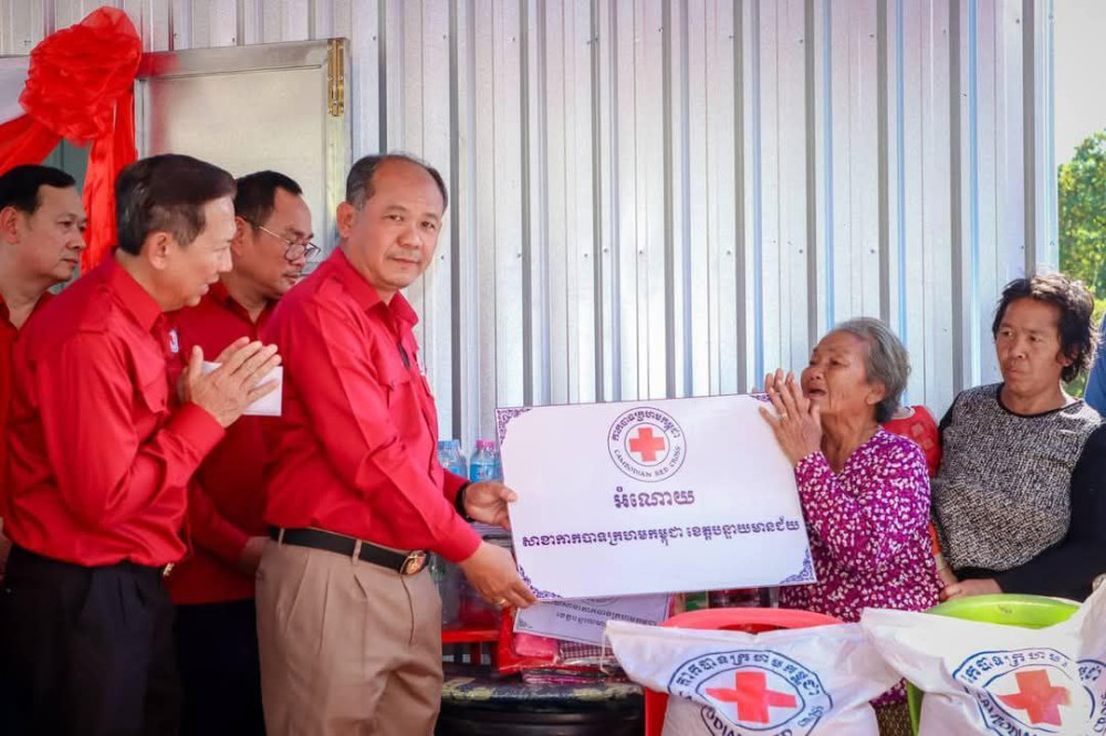 AKP បន្ទាយមានជ័យ ថ្ងៃទី១៥ ខែមករា ឆ្នាំ២០២៥--ឯកឧត្តម អ៊ុំ រាត្រី អភិបាលខេត្តបន្ទាយមានជ័យ និងជាប្រធានគណៈកម្មាធិការសាខាកាកបាទក្រហមខេត្ត បានដឹកនាំក្រុមការងារ និងអាជ្ញាធរមូលដ្ឋាន ប្រគល់ផ្ទះមនុស្សធម៌ទី១៧ ជូនលោកយាយឈ្មោះ សែម យ៉ុន អាយុ៧៨ឆ្នាំ ដែលចិញ្ចឹមចៅប្រុសស្រី២នាក់ មានទីលំនៅក្នុងភូមិជំទាវ ឃុំឫស្សីក្រោក ស្រុកមង្គលបូរី និងចែកអំណោយដល់ពលរដ្ឋក្រីក្រចាស់ជរាចំនួន១០គ្រួសារ កាលពីរសៀលថ្ងៃអង្គារ ទី១៤ ខែមករា ឆ្នាំ២០២៥នេះ។