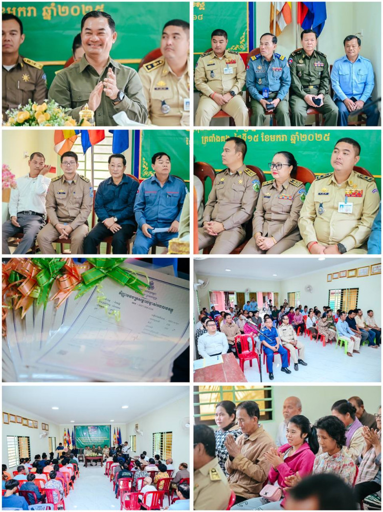 ថ្លែងក្នុងពិធីចែកវិញ្ញាបនបត្រសម្គាល់ម្ចាស់អចលនវត្ថុ ប្លង់រឹង ចំនួន៤៩ប័ណ្ណ ជូនប្រជាពលរដ្ឋ នៅព្រឹកថ្ងៃទី១៥ ខែមករា ឆ្នាំ២០២៥នេះ ឯកឧត្តមបណ្ឌិត ជាម ច័ន្ទសោភ័ណ អភិបាល នៃគណៈអភិបាលខេត្ត បានបញ្ជាក់ថា ក្រោមការដឹកនាំរបស់រាជរដ្ឋាភិបាលនីតិកាលទី៧ នៃរដ្ឋសភា ដែលមានសម្តេចមហាបវធិបតី ហ៊ុន ម៉ាណែត នាយករដ្ឋមន្ត្រី បានដាក់ចេញនូវយុទ្ធសាស្ត្របញ្ចកោណដំណាក់កាលទី១ ដែលនឹងបន្តដំណើរការកែទម្រង់ដីធ្លី ដោយជំរុញការចុះបញ្ជីដីធ្លី និងការដោះស្រាយវិវាទដីធ្លី នៅក្រៅប្រព័ន្ធតុលាការ សំដៅគ្រប់គ្រង និងអភិវឌ្ឍន៍វិស័យដីធ្លី ឱ្យបានត្រឹមត្រូវ និងកាន់តែមានប្រសិទ្ធភាព។ ហេីយការប្រគល់វិញ្ញាបនបត្រសម្គាល់ម្ចាស់អចលនវត្ថុ នេះគឺជាការឆ្លុះបញ្ចាំងឲ្យឃើញអំពីការ យកចិត្តទុកដាក់ខ្ពស់ របស់រាជរដ្ឋាភិបាល ក្នុងការធានាកម្មសិទ្ធិដីធ្លី ស្របច្បាប់ជូនប្រជាពលរដ្ឋ សំដៅលើកកម្ពស់ជីវភាព សុខុមាលភាព កាត់បន្ថយជម្លោះដីធ្លី និងការកាត់បន្ថយភាពក្រីក្រផងដែរ។