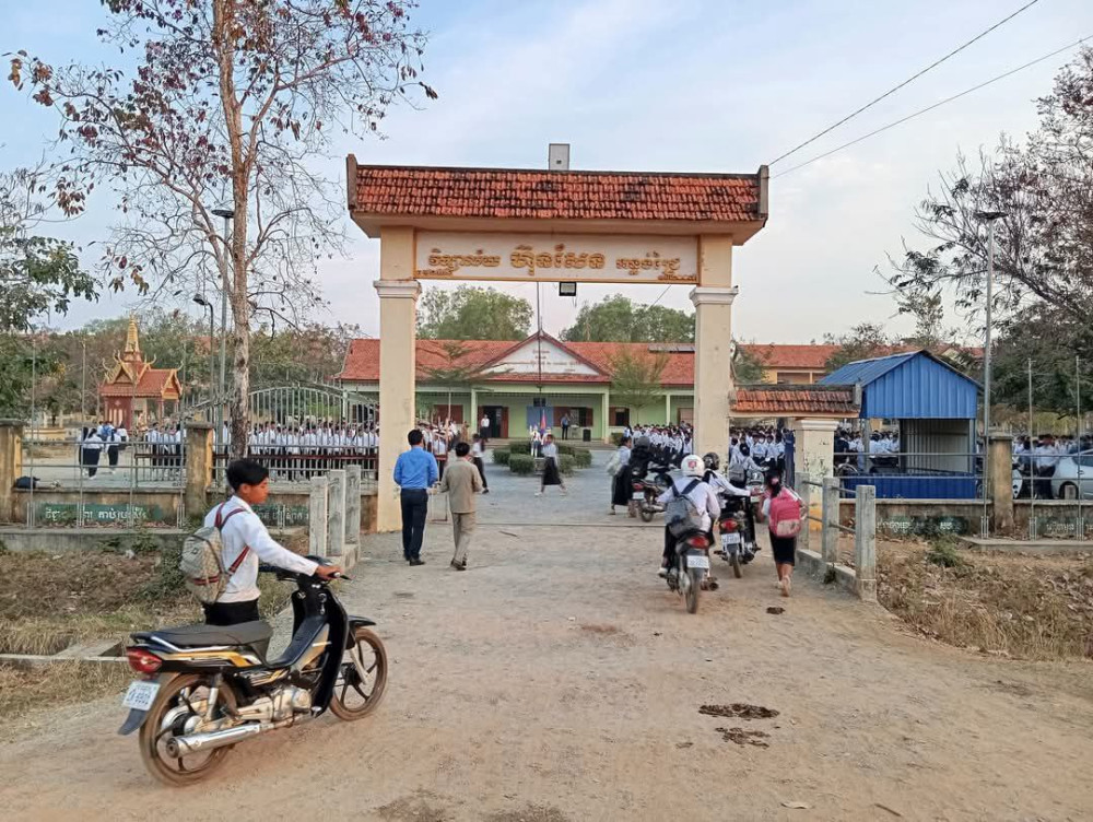 AKP កំពង់ស្ពឺ ថ្ងៃទី១២ ខែកុម្ភៈ ឆ្នាំ២០២៥--ក្នុងបរិវេណវិទ្យាល័យ ហ៊ុន សែន អន្លង់ជ្រៃ ស្ថិតក្នុងឃុំប្រាំបីមុម ស្រុកថ្ពង ខេត្តកំពង់ស្ពឺ បានរៀបចំពិធីជួបសំណេះសំណាល និងអប់រំផ្សព្វផ្សាយពីបញ្ហាប្រឈមមួយចំនួនដល់ប្អូនៗសិស្សានុសិស្សក្នុងវិទ្យាល័យនោះ កាលពីថ្ងៃទី១១ ខែកុម្ភៈ ឆ្នាំ២០២៥ ដោយមានការអញ្ជើញចូលរួមពីលោក សេង សុវណ្ណា អភិបាលរងនៃគណៈអភិបាលស្រុក និងជាអនុប្រធានគណៈបញ្ជាការឯកភាពរដ្ឋបាលស្រុកថ្ពង ព្រមទាំងមានការចូលរួមពីថ្នាក់ដឹកនាំមន្ត្រីរាជការ អាជ្ញាធរ ឃុំ កងកម្លាំងប្រដាប់អាវុធទាំងបីប្រភេទរបស់ស្រុក លោកគ្រូអ្នកគ្រូនិងសិស្សានុសិស្សវិទ្យាល័យ ហ៊ុន សែនអន្លង់ជ្រៃយ៉ាងច្រើនកុះករ។