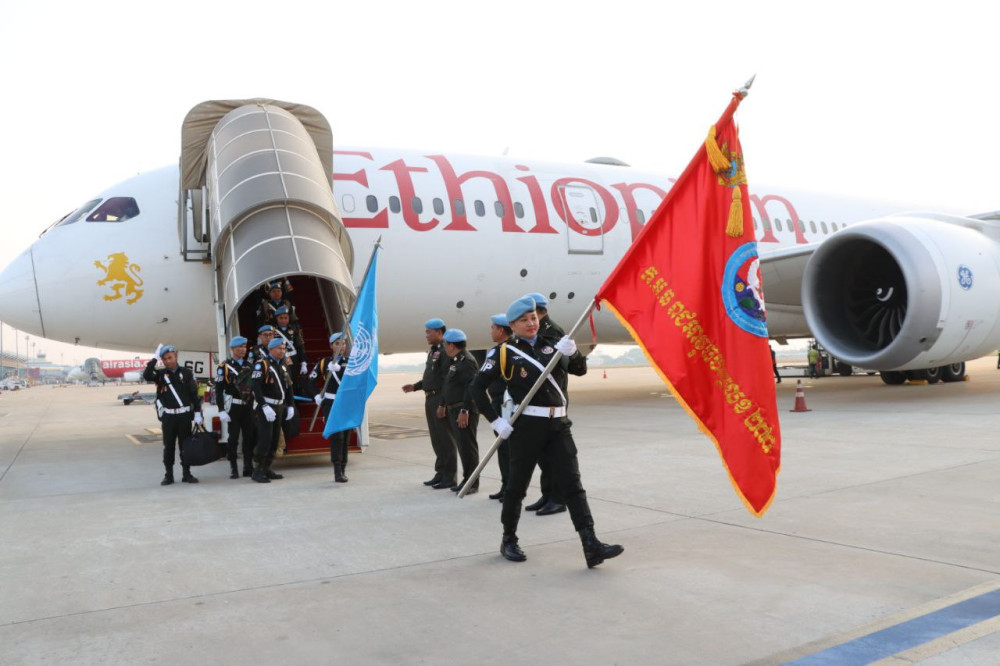 AKP ភ្នំពេញ ថ្ងៃទី១២ ខែកុម្ភៈ ឆ្នាំ២០២៥-- កងកម្លាំងរាជអាវុធហត្ថមួកខៀវកម្ពុជាចំនួន៧៣នាក់ធ្វើមាតុភូមិនិវត្តន៍ ក្រោយបញ្ចប់បេសកកម្មUNរយៈពេល១ឆ្នាំនៅស៊ូដង់ បានមកដល់អាកាសយានអន្តរជាតិភ្នំពេញប្រកបដោយសុវត្ថិភាព នាថ្ងៃទី១២ ខែកុម្ភ: ឆ្នាំ២០២៥ ដោយ ឯកឧត្តម ឧត្តមសេនីយ៍ទោ សែម រតនា អនុប្រធានទី១គណៈកម្មាធិការជាតិ និងជាអគ្គនាយកស្តីទីមជ្ឈមណ្ឌលជាតិរក្សាសន្តិភាព បានអញ្ជើញទៅទទួល ជួបសំណេះសំណាល និងសួរសុខទុក្ខ។