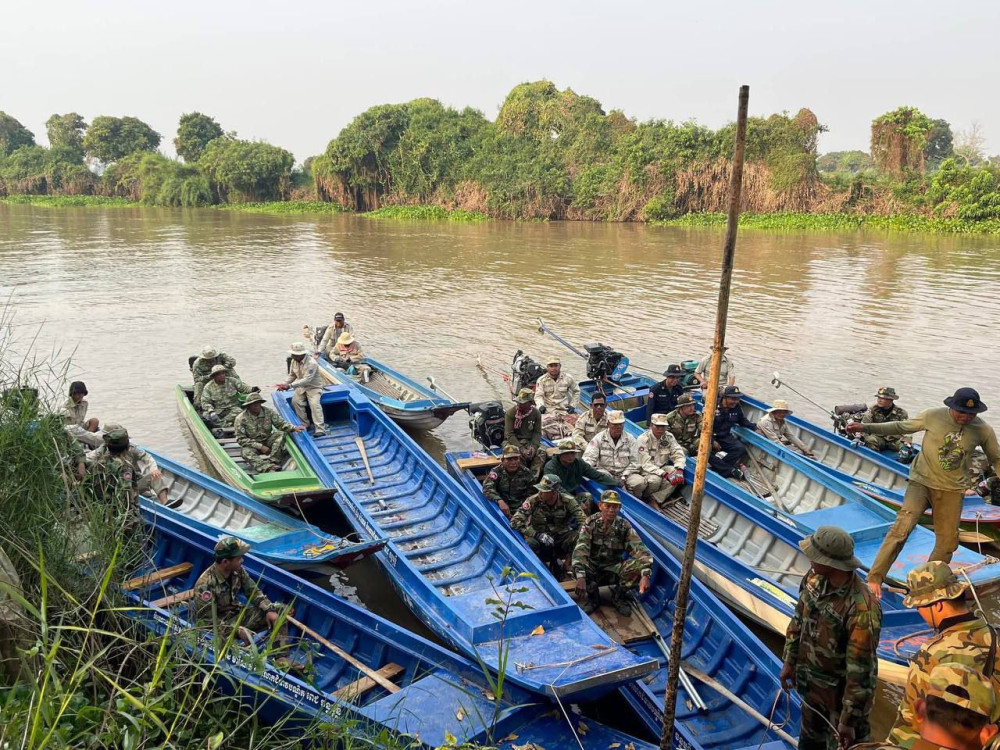 ដោយអនុវត្តតាមបទបញ្ជារបស់ឧត្តមសេនីយ៍ទោ សោម ស៊ុន មេបញ្ជាការតំបន់ប្រតិបត្តិការសឹករងកំពង់ធំ នាព្រឹកថ្ងៃទី១២ ខែកុម្ភៈ ឆ្នាំ២០២៥ លោកវរសេនីយ៍ទោ សេង សំអុល នាយសេនាធិការរង និងជាប្រធានក្រុមទីបញ្ជាការស្រាលប្រចាំការបង្រ្កាបបទល្មើសនេសាទនៅតំបន់ឃុំផាត់សណ្ដាយ បានបន្តដឹកនាំកងកម្លាំងនៃបញ្ជាការដ្ឋានតំបន់ប្រតិបត្តិការសឹករងកំពង់ធំ ដោយសហការជាមួយកម្លាំងចម្រុះប្រចាំការនៅទីបញ្ជាការស្រាលឃុំផាត់សណ្ដាយ ស្រុកកំពង់ស្វាយ ខេត្តកំពង់ធំ និងមានការណែនាំរបស់មន្ត្រីជំនាញជលផលសង្កាត់ប្រចាំការនៅទីបញ្ជាការស្រាល បន្តធ្វើសកម្មភាពកម្ទេចឧបករណ៍នេសាទល្មើសច្បាប់ ដែលកំពុងធ្វើសកម្មភាពនៅតំបន់ព្រែកតាសោម ឃុំផាត់សណ្ដាយ ស្រុកកំពង់ស្វាយ ខេត្តកំពង់ធំ។