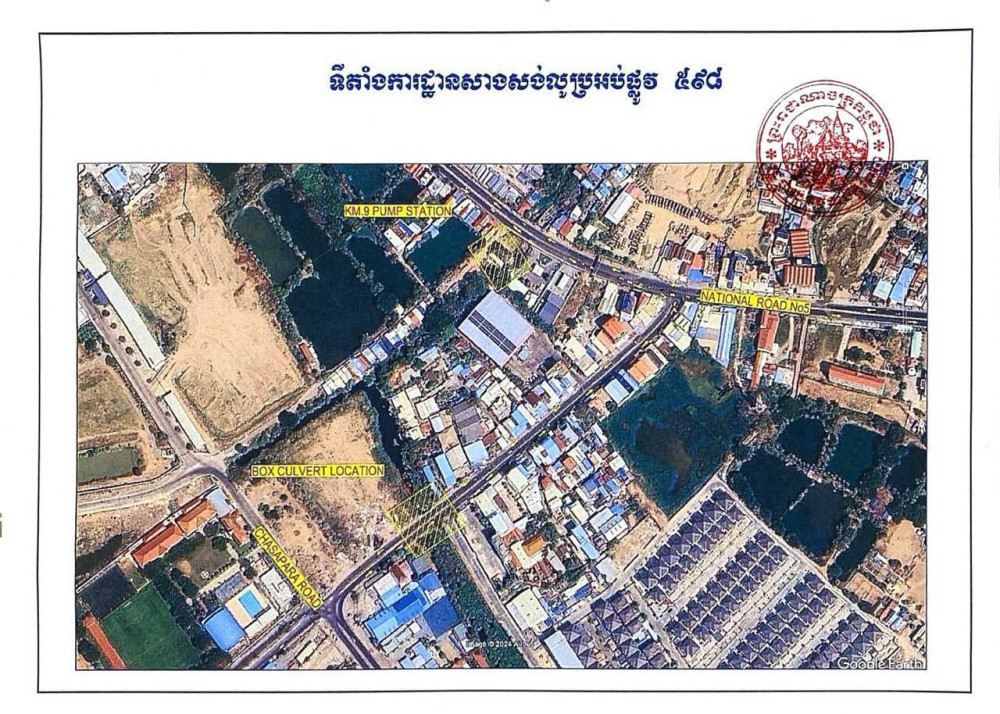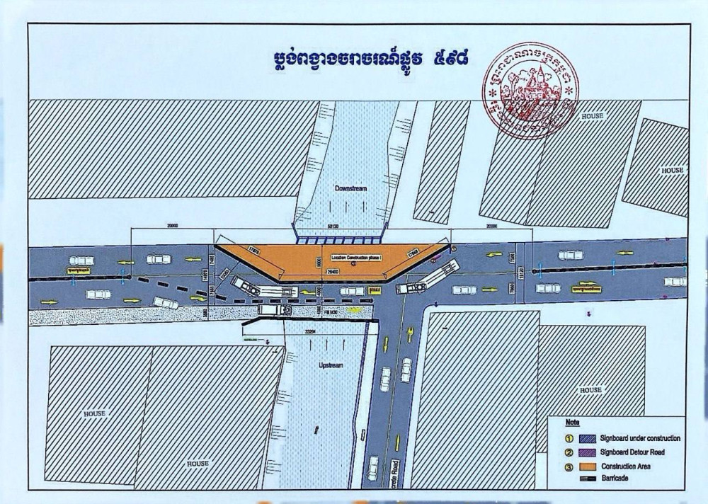 រដ្ឋបាលរាជធានីភ្នំពេញជូនដំណឹងស្ដីពីការបិទផ្លូវ៥៩៨ ចំណុចប្រឡាយអូរវែង សង្កាត់ស្វាយប៉ាកជាបណ្តោះ អាសន្ន ដើម្បីសាងសង់លូប្រអប់រំដោះទឹកនៅរដូវវស្សា
