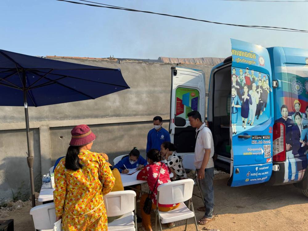 ក្រសួងការងារ បញ្ជូនរថយន្តការងារចល័តរបស់ NEA ដើម្បីផ្តល់ការងារថ្មី ជូនកម្មករនិយោជិត នៅមុខរោងចក្រដែលត្រូវបានអគ្គិភ័យឆាបឆេះ ក្នុងខណ្ឌដង្កោ រាជធានីភ្នំពេញ
