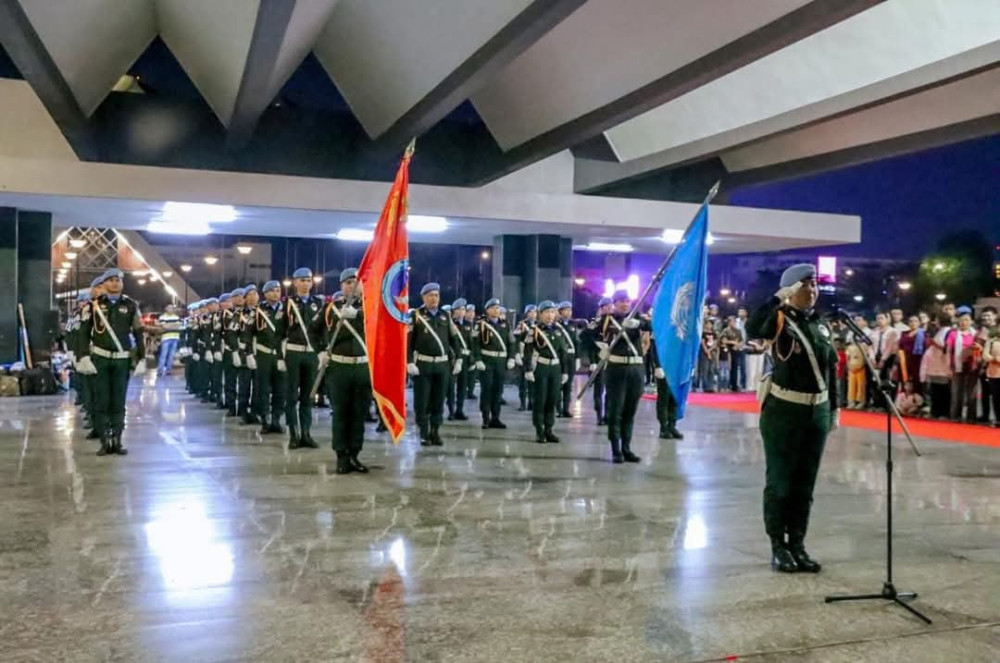 AKP ភ្នំពេញ ថ្ងៃទី១៣ ខែកុម្ភៈ ឆ្នាំ២០២៥-- ឯកឧត្តម ឧត្តមសេនីយ៍ទោ សែម រតនា អនុប្រធានទី១គណៈកម្មាធិការជាតិ និងជាអគ្គនាយកស្តីទីមជ្ឈមណ្ឌលជាតិរក្សាសន្តិភាពបានអញ្ជើញជាអធិបតីក្នុងពិធីសំណេះសំណាល និងជូនដំណើរកងរាជអាវុធហត្ថលេខ៨៧២ ចំនួន៧៣នាក់ ក្នុងនោះនារីចំនួន៣៦នាក់ ដែលត្រូវចេញទៅបំពេញបេសកកម្មអង្គការសហប្រជាជាតិនៅសាធារណរដ្ឋស៊ូដង់ខាងត្បូង នារាត្រីថ្ងៃទី១២ ខែកុម្ភៈ ឆ្នាំ២០២៥ នៅអាកាសយានដ្ឋានអន្តរជាតិភ្នំពេញ។
