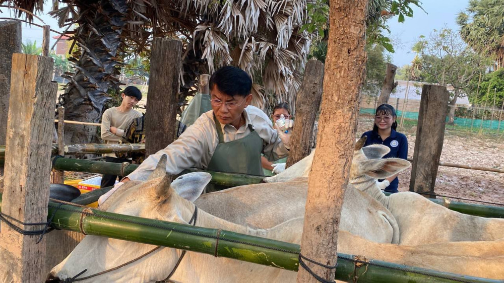 AKP កំពង់ធំ ថ្ងៃទី១៣ ខែកុម្ភៈ ឆ្នាំ២០២៥ -- ក្រុមការងាររបស់ការិយាល័យផលិតកម្ម និងបសុព្យាបាលខេត្ត ដឹកនាំដោយលោក ចាន់ បញ្ញាវ័ន្ដ ប្រធានការិយាល័យផលិតកម្ម និងបសុព្យាបាលខេត្តកំពុងធំ រួមទាំងមន្ត្រី ភ្នាក់ងារសុខសត្វភូមិ សហការជាមួយ រដ្ឋបាលបាលស្រុកកំពង់ស្វាយ ដោយមានការចូលរួមពីលោកប្រធានការិយាល័យកសិកម្ម ធនធានធម្មជាតិ និងបរិស្ថានស្រុក អាជ្ញាធរភូមិ ឃុំបានចុះយុទ្ធនាការចាក់វ៉ាក់សាំង ការពារជំងឺសាទឹកគោ ក្របីជូនប្រជាពលរដ្ឋនៅភូមិល្វាជោម ឃុំត្រពាំងឬស្សី ស្រុកកំពង់ស្វាយ ខេត្តកំពង់ធំ នាព្រឹកថ្ងៃទី១៣ ខែកុម្ភៈ ឆ្នាំ២០២៥។