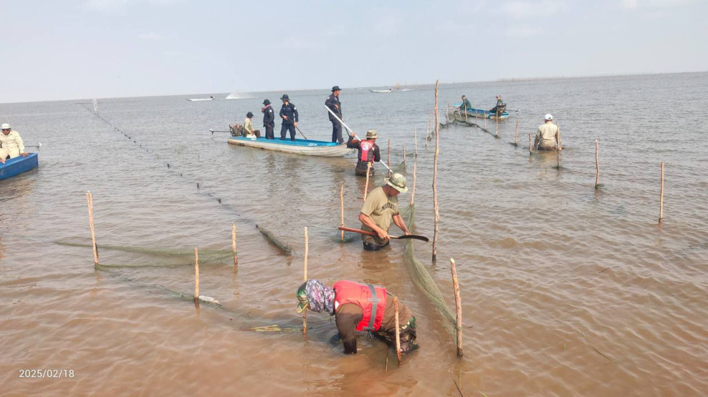 AKP កំពង់ធំ ថ្ងៃទី១៩ ខែកុម្ភៈ ឆ្នាំ២០២៥-- កងកម្លាំងអន្តរាគមន៍នៃបញ្ជាការដ្ឋានតំបន់ប្រតិបត្តិការសឹករងកំពង់ធំ ដឹកនាំដោយលោកវរសេនីយ៍ទោ សេង សំអុល នាយសេនាធិការរង និងជាមេបញ្ជាការកងកម្លាំងអន្តរាគមន៍ សហការជាមួយកម្លាំងចម្រុះរួមមានមន្ត្រីជលផលសង្កាត់ផាត់សណ្ដាយ កងកម្លាំងប្រដាប់អាវុធទាំងបី មន្ត្រីឧទ្យានុរក្សតំបន់រ៉ាំសា កាលពីថ្ងៃទី១៨ខែកុម្ភៈឆ្នាំ២០២៥ បានចេញធ្វើសកម្មភាពបង្ក្រាបបទល្មើសនេសាទខុសច្បាប់ នៅតំបន់កោះតាបរ ក្នុងឃុំផាត់សណ្ដាយ ស្រុកកំពង់ស្វាយ ខេត្តកំពង់ធំ។