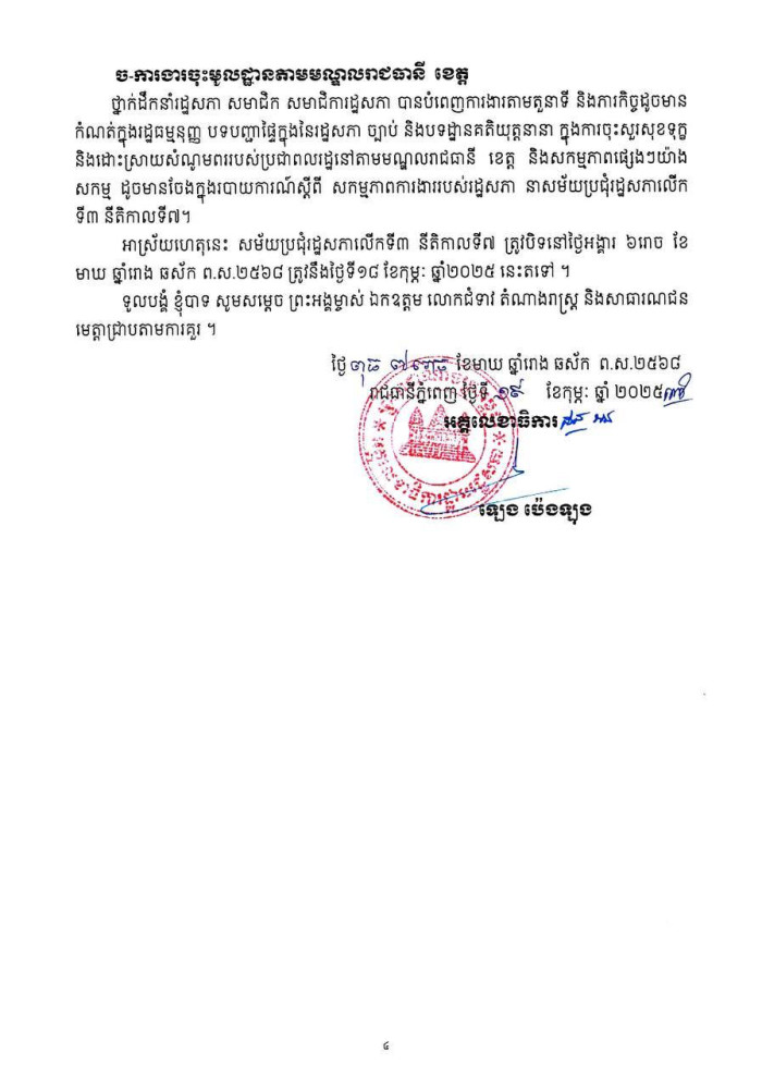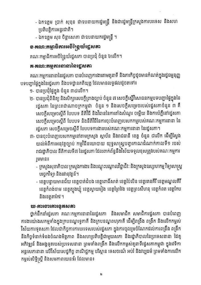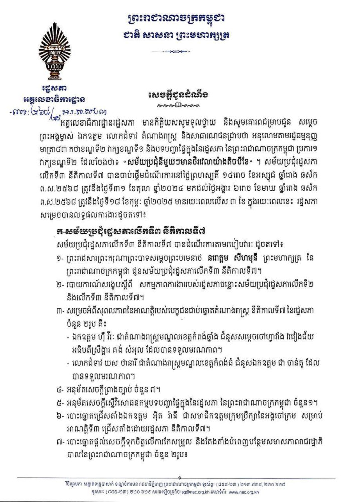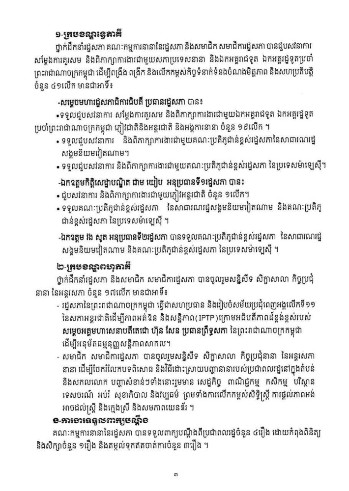លទ្ធផលការងារដែលរដ្ឋសភាសម្រេចបានក្នុងរយៈពេល៣ខែ គិតចាប់ពីថ្ងៃទី៣១ ខែតុលា ឆ្នាំ២០២៤ ដល់ថ្ងៃទី១៨ ខែកុម្ភៈ ឆ្នាំ២០២៥