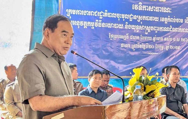 AKP ភ្នំពេញ ថ្ងៃទី២០ ខែកុម្ភៈ ឆ្នាំ២០២៥ -- ឯកឧត្ដមទេសរដ្ឋមន្រ្តី លី ធុជ ប្រធានក្រុមការងាររាជរដ្ឋាភិបាលចុះមូលដ្ឋានស្រុកបាធាយ ខេត្តកំពង់ចាម និងជាតំណាងឯកឧត្តមសន្តិបណ្ឌិត នេត សាវឿន ឧបនាយករដ្ឋមន្ត្រី និងជាប្រធានក្រុមការងាររាជរដ្ឋាភិបាលចុះមូលដ្ឋានខេត្តកំពង់ចាម បានអញ្ជើញដឹកនាំវេទិកាសាធារណៈ និងជួបសំណេះសំណាលជាមួយមន្រ្តីរាជការ និងប្រជាពលរដ្ឋស្ថិតក្នុងឃុំជាលា ស្រុកបាធាយ ខេត្តកំពង់ចាម ថ្ងៃទី២០ ខែកុម្ភៈ ឆ្នាំ២០២៥។