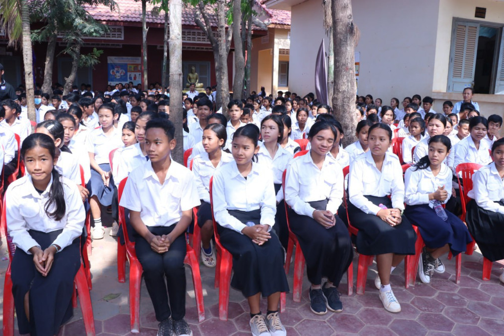 លោកអភិបាលរងស្រុកក៏បានអរគុណចំពោះទឹកចិត្តដ៏សប្បុរសធម៌ ដែលតែងតែយកចិត្តទុកដាក់ជាមួយរាជរដ្ឋាភិបាលកម្ពុជា ក្នុងការបណ្តុះបណ្តាលនូវធនធានមនុស្សនៅថ្នាក់មូលដ្ឋាន ដោយមានការផ្គត់ផ្គង់ជាមធ្យោបាយធ្វើដំណើរ និងសម្ភារសិក្សា សម្លៀកបំពាក់ជូនដល់សិស្សក្រីក្រ ដែលខ្វះមធ្យោបាយធ្វើដំណើរមកសាលារៀន សំខាន់ការផ្តល់កុំព្យូទ័រដល់សាលា ដើមី្បបណ្តុះបណ្តាលសិស្សបន្តទៀត និងបានសំណូមពរដល់អង្គការសូមបន្តនូវប្រពៃណីនៃការគាំទ្រដល់វិស័យអប់រំនៅកម្ពុជា ក៏ដូចនៅតាមមូលដ្ឋានខេត្តសៀមរាប ដែលមានសាលាជួបនូវការខ្វះខាតបន្តទៀត ហើយបានផ្តាំផ្ញើផងដែរដល់លោកគ្រូអ្នកគ្រូ សិស្សានុសិស្ស ក៏ដូចជាមាតាបិតា អាណាព្យាបាល និងគណៈកម្មការគ្រប់គ្រងសាលា ចូលរួមថែរក្សានូវទ្រព្យសម្បត្តិក្នុងសាលា ដែលបានការបំពាក់ដោយអង្គការដើមី្បប្រើប្រាស់បានយូរអង្វែង។