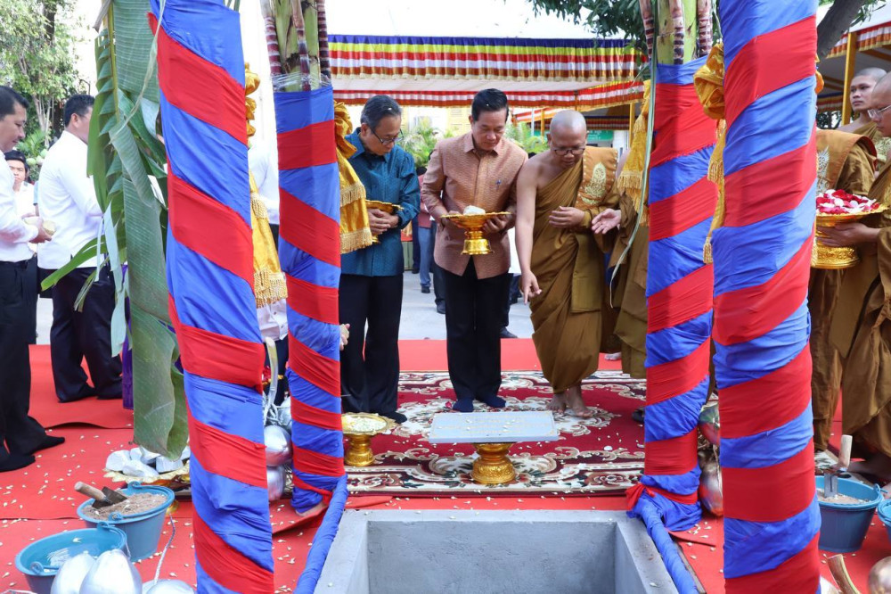 ពិធីបើកការដា្ឋនសាងសង់អគារអន្តេវាសិកដ្ឋានសម្តេចតេជោសន្តិភាពកម្ពស់៧ជាន់ ដែលជាអំណោយសម្ដេចតេជោហ៊ុន សែន ស្ថិតនៅវត្ដស្វាយពពែ
