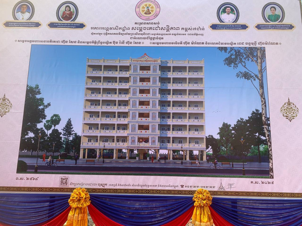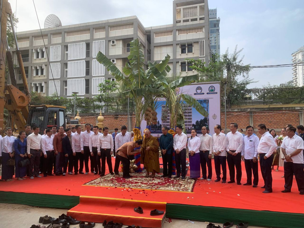 AKP ភ្នំពេញ ថ្ងៃទី២១ ខែកុម្ភៈ ឆ្នាំ២០២៥-- ឯកឧត្ដម ឃួង ស្រេង អភិបាលរាជធានីភ្នំពេញ តំណាងដ៏ខ្ពង់ខ្ពស់សម្តេចអគ្គមហាសេនាបតីតេជោ ហ៊ុន សែន ប្រធានព្រឹទ្ធសភានៃព្រះរាជាណាចក្រកម្ពុជា និងឯកឧត្ដម ម៉ប់ សារិន ប្រធានក្រុមប្រឹក្សារាជធានីភ្នំពេញ នាព្រឹកថ្ងៃទី២១ ខែកុម្ភៈ២០២៥នេះ បានអញ្ជើញជាអធិបតីក្នុងពិធីក្រុងពលីតាមបែបសាសនា ដើម្បីសុំម្ចាស់ទឹកម្ចាស់ដីសុំសេចក្តីសុខចម្រើន ក្នុងការបើកការដា្ឋនសាងសង់អគារអន្តេវាសិកដ្ឋាន «សម្តេចតេជោសន្តិភាព» កម្ពស់៧ជាន់ ស្ថិតនៅក្នុងពុទ្ធិកសាកលវិទ្យាល័យព្រះសីហមុនីរាជា ស្ថិតនៅក្នុងបរិវេណវត្ដស្វាយពពែ សង្កាត់ទន្លេបាសាក់ ខណ្ឌចំការមន រាជធានីភ្នំពេញ។