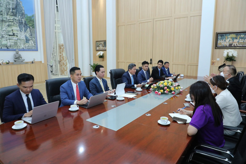 AKP ភ្នំពេញថ្ងៃទី២១ ខែកុម្ភៈ ឆ្នាំ ២០២៥ -- CDC និងគណៈប្រតិភូចិន ពិភាក្សាការងារលើគម្រោងវិនិយោគសួនកសិ-ឧស្សាហកម្ម សម្រាប់កិច្ចសហប្រតិបត្តិការស៊ីជម្រៅលើការកែច្នៃផលិតផលកសិកម្ម នៅកម្ពុជា។