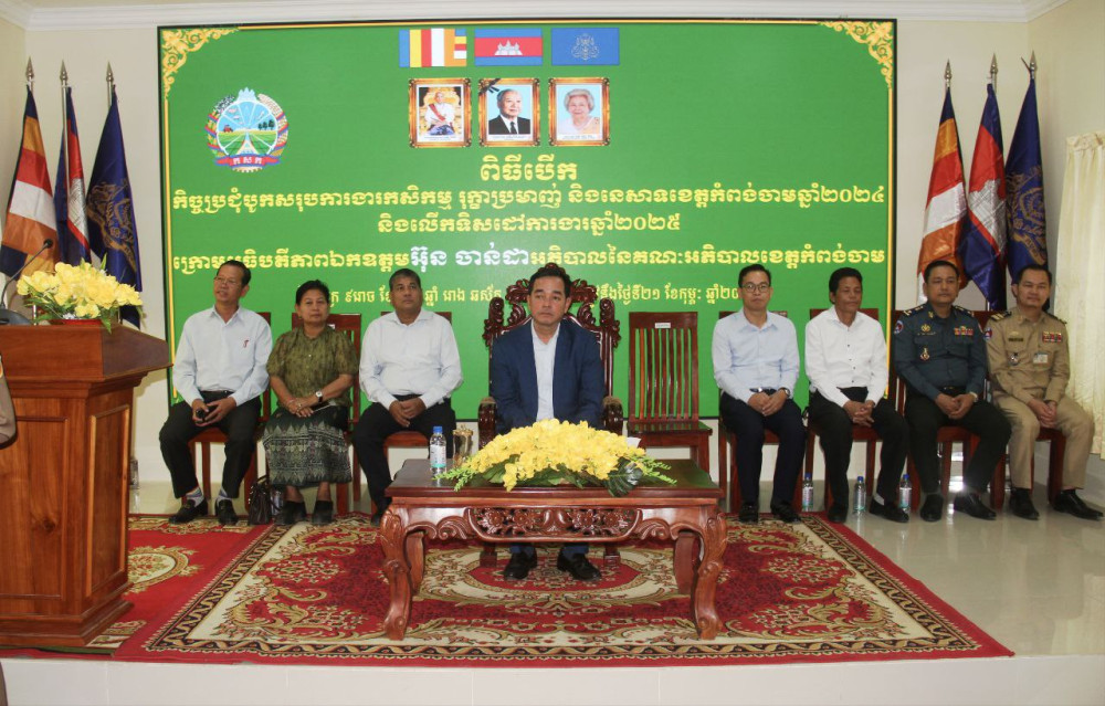 ថ្លែងក្នុងពិធីបើកកិច្ចប្រជុំបូកសរុបលទ្ធផលការងារប្រចាំឆ្នាំ២០២៤ និងលើកទិសដៅការងារឆ្នាំ២០២៥ របស់មន្ទីរកសិកម្ម រុក្ខាប្រមាញ់ និងនេសាទខេត្តកំពង់ចាម នៅព្រឹកថ្ងៃទី២១ ខែកុម្ភៈ ឆ្នាំ២០២៥ ឯកឧត្តម អ៊ុន ចាន់ដា អភិបាលនៃគណៈអភិបាលខេត្ត បានលើកឡើងថា វិស័យកសិកម្មដែលជាវិស័យស្នូលក្នុងការអភិវឌ្ឍសេដ្ឋកិច្ច-សង្គមខេត្តកំពង់ចាម មានការរីកចម្រើនប្រកបដោយចីរភាព ដោយប្រជាពលរដ្ឋប្រមាណជាង៦២% ជាអ្នកប្រកបលើវិស័យកសិកម្ម។ វិស័យកសិកម្មជាសក្តានុពល បានចូលរួមចំណែកយ៉ាងខ្លាំងដល់សេដ្ឋកិច្ចខេត្ត គឺមានប្រមាណជាង៣៩,៥៥% ក្នុងទំហំសេដ្ឋកិច្ចខេត្តចំនួន ២.៦៥៧លានដុល្លារ។ វិស័យកសិកម្មបានចូលរួមរក្សាតុល្យភាពស្បៀងសម្រាប់ខេត្ត និងលើសពីតម្រូវការហូបចុករបស់ប្រជេាជនហើយនៅសល់បើគិតជាអង្ករសរុបប្រមាណ ២៣១.៨៥៤តោន ហើយបើគិតជា ស្រូវវិញគឺប្រមាណ ៣៦២.២៧២តោន សម្រាប់ធ្វើការនាំចេញទៀតផង។