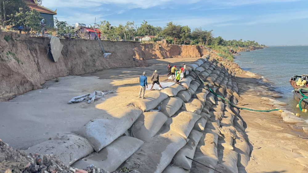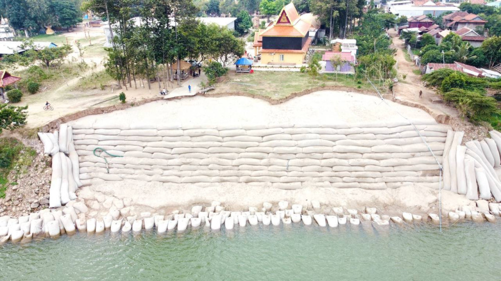 -ខេត្តកំពង់ចាម ចំនួន ៤ទីតាំង អនុវត្តដោយប្រើបាវ Geo Textile សរុបប្រវែង ១៦០០ម។